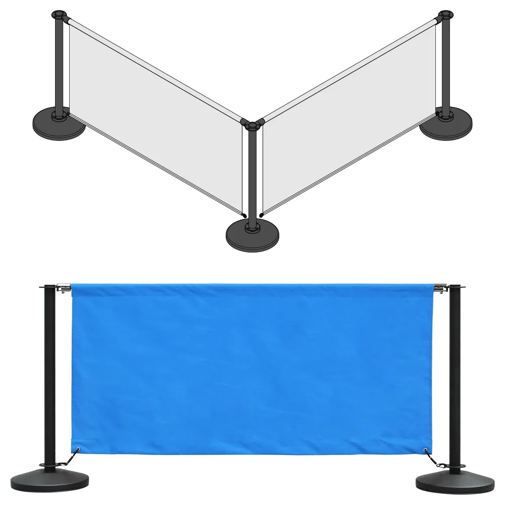 A restaurant outdoor barrier is used to section off seating areas, cordon off areas where customers shouldn't be, and help create a manageable queue! This set has (2) blue polyester banners included that are each 1.6m long, easily creating barriers in shopping centres, cinemas, museums, restaurants, cafes, retail stores, and more. The banners have a channel sewn into the top that allows the stainless steel rods to be threaded through to attach to the stanchions, with quick clip ends securely keeping the banners in place. The bottom of each banner has grommets that allow spring clips to attach them to the bottom of the posts whilst still moving with the breeze.