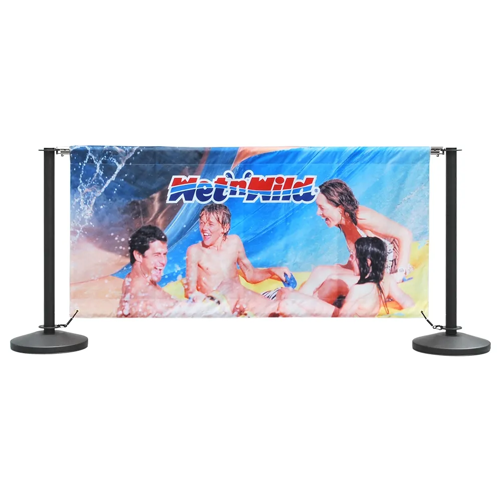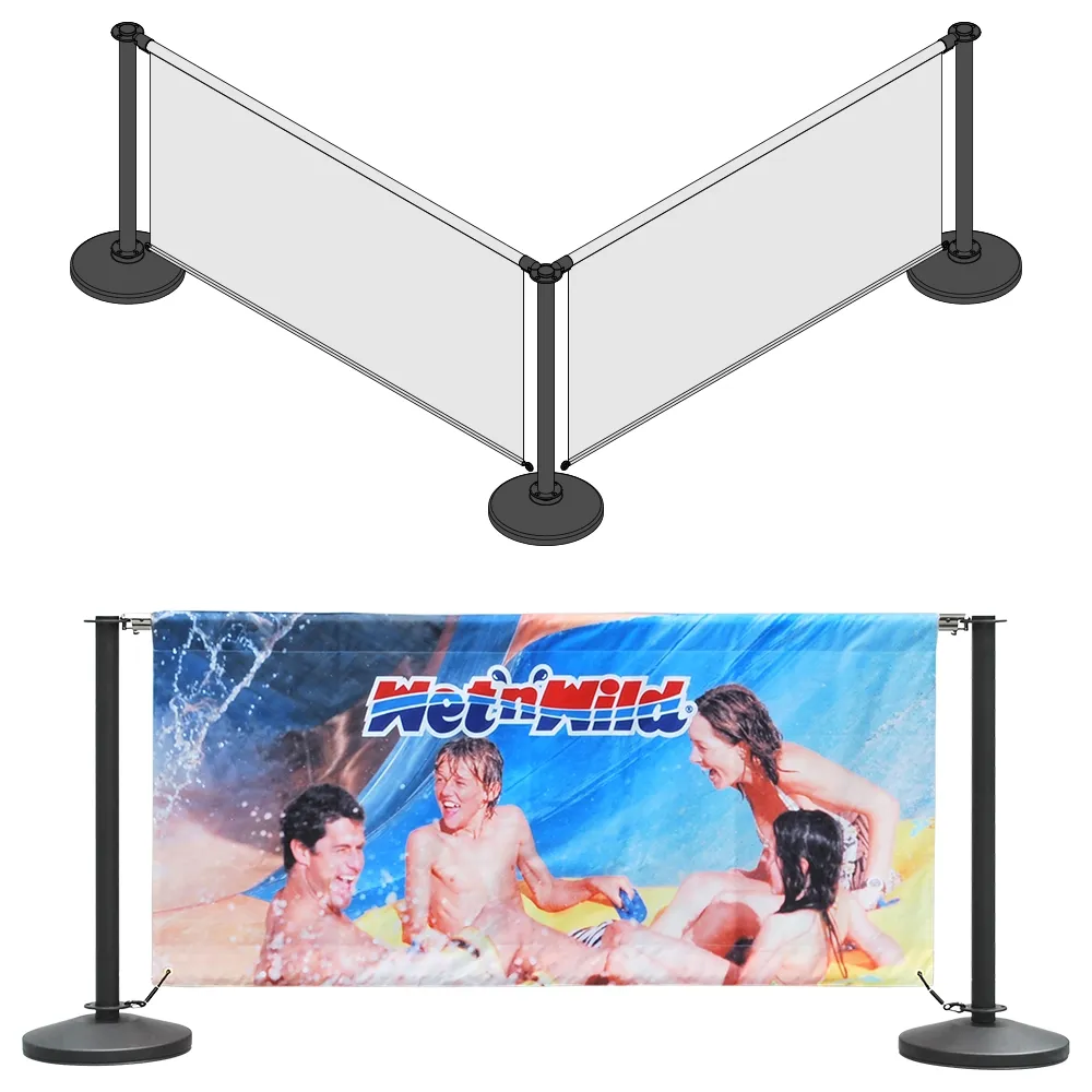 Display banners, wind barriers, and other breeze barriers have stainless steel stanchions with a black finish to provide durable, long lasting displays. Combined with the polyester fabric banners, the cafe wind barrier can be use in heavily trafficked areas for years to come.