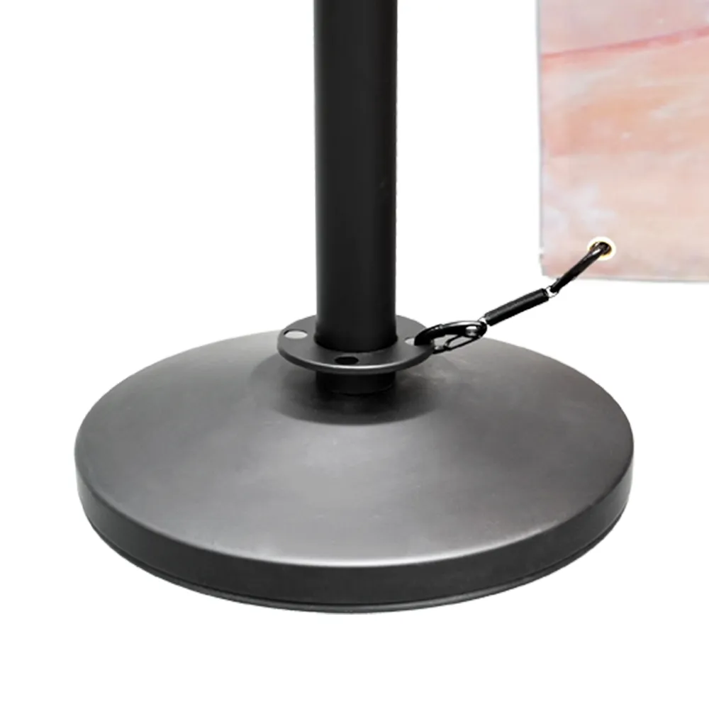 The bottom of the banners uses a spring clip to attach to the poles, allowing the unit to be blown by the wind without breaking. This will help prevent wind from getting to patrons as they enjoy the outdoors in front of your business.