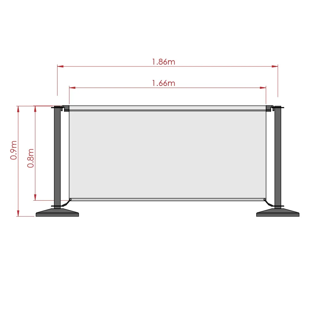 The cafe wind barrier has a steel bar that runs through the banners to attach them to the stanchions. This helps to ensure they remain taut whilst on display. Connecting the bar is easy as well, with a clasp to attach to the stanchions that ensures the display doesn't come apart.