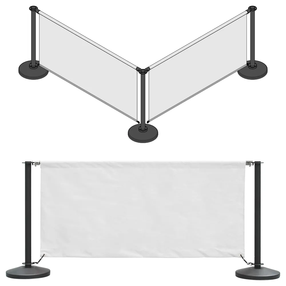 These restaurant barriers are placed outside on pathways to help separate seating areas for passersby and give patrons protection from wind whilst eating! There are (2) fabric banners included that are made from white polyester fabric, providing a hard-wearing unit that stands up well to daily use even outdoors! Each cafe banner has a channel sewn into the top for the included stainless steel rods to go through for attachment to the stanchions. The quick clip ends securely attach to the top of each post's 4-way adapter, allowing banners to go out in multiple directions to meet your exact needs.
