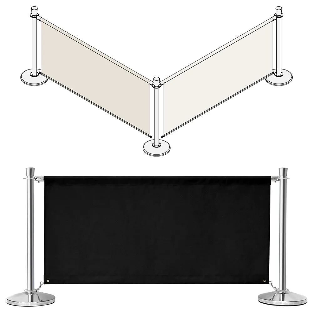 Pavement cafe barriers are useful in creating a seating area, cordoning off sections, or offering queue management at your location! There are (3) banners with this kit that are 1.6m long and made from polyester fabric to be hard-wearing, ideal for daily use in heavily-trafficked areas both inside and outside! Channels sewn into the top of each channels allow the banners to hang from the included stainless steel rods which connect to the barrier posts using secure quick clip. There are (2) spring clips per banner provided as well that attach via grommets on each banner and allow the fabric to move gently with light breezes.