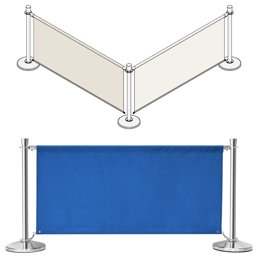 This cafe barrier is a kit with (3) stanchions to hold up the included banners! Each stanchion is .9m tall and features a tulip top with a 4-way adapter that makes placing the banners in the needed directions easy. There is a 4-way adapter above the base as well to connect the bottom of the banners using spring clip that attach to grommets, with the springs allowing banners to move with the wind. This style of fixture is used in retail stores, museums, cafes, information centres, cinemas, and more to manage queues, cordon off areas from visitors and creating a seating area separate from the pathway.