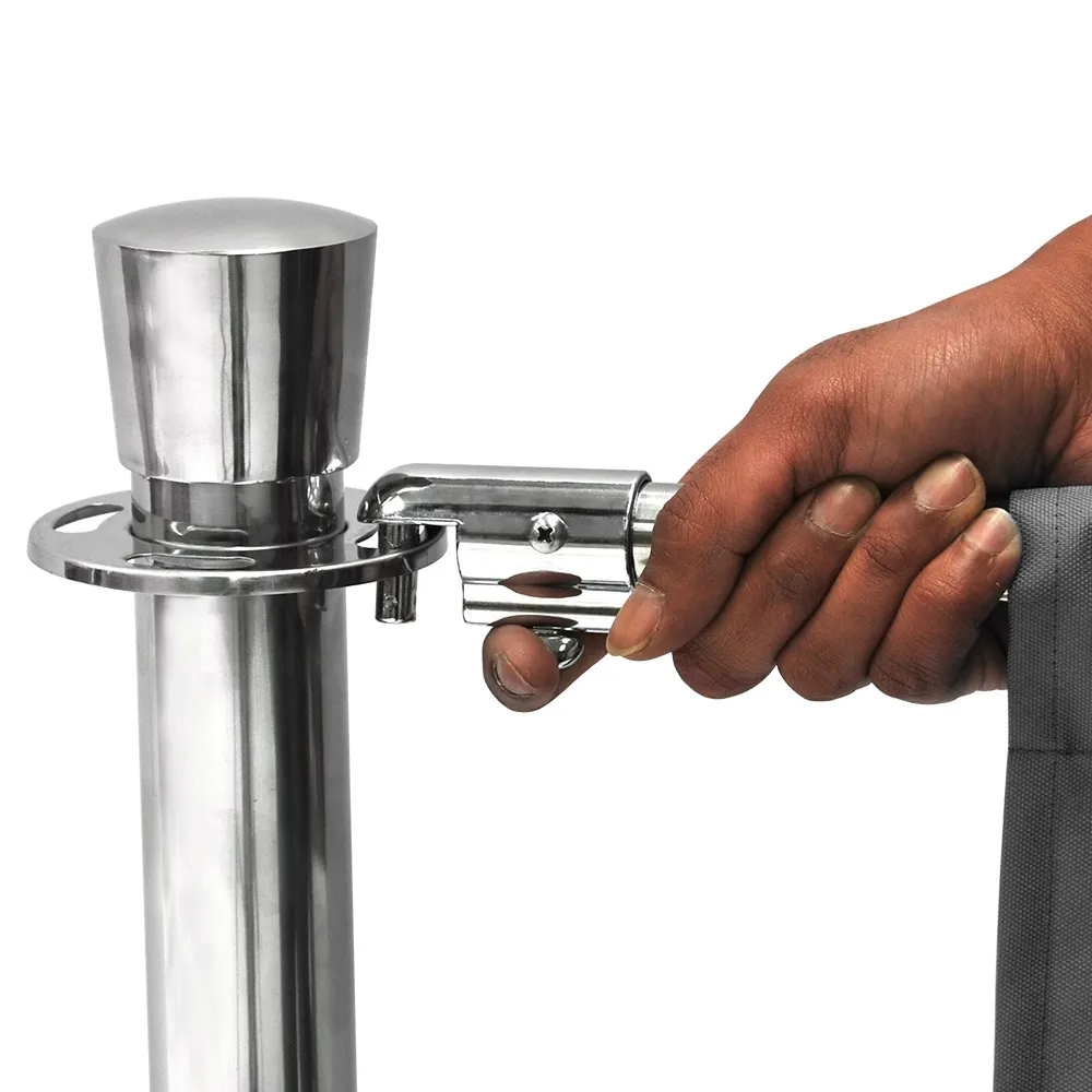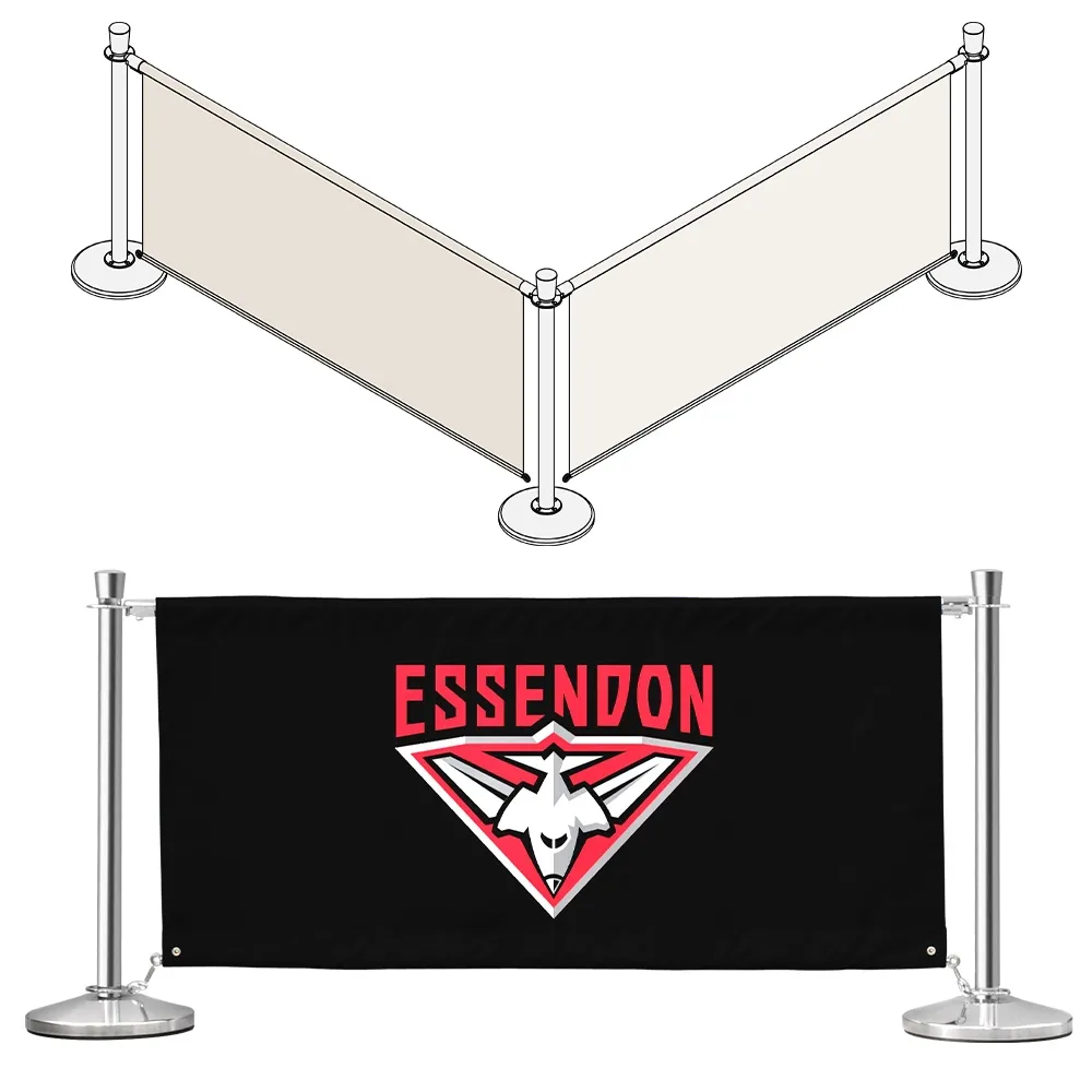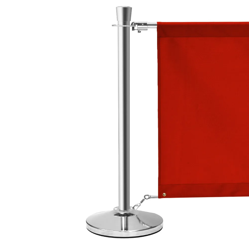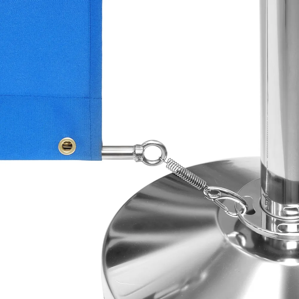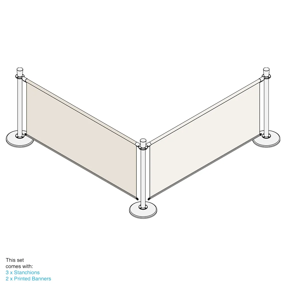 These custom cafe barriers are used at restaurants, cafes, information centres, cinemas, exhibition halls, shopping centres and more to manage queues, set up dining areas, cordon off areas and more! This kit uses banners that have your custom designs printed on both sides, maximising view and helping make your brand more visible. There are (2) 1.6m long banners included with this kit that are digitally printed on using a dye-sublimation process that provides vivid imagery and rich colours. The banners themselves have a channel sewn into the top to thread the stainless steel rod through to connect securely to the stanchions using quick clips. Springs clips attach between the bottom of the post and metal grommets on each banner.