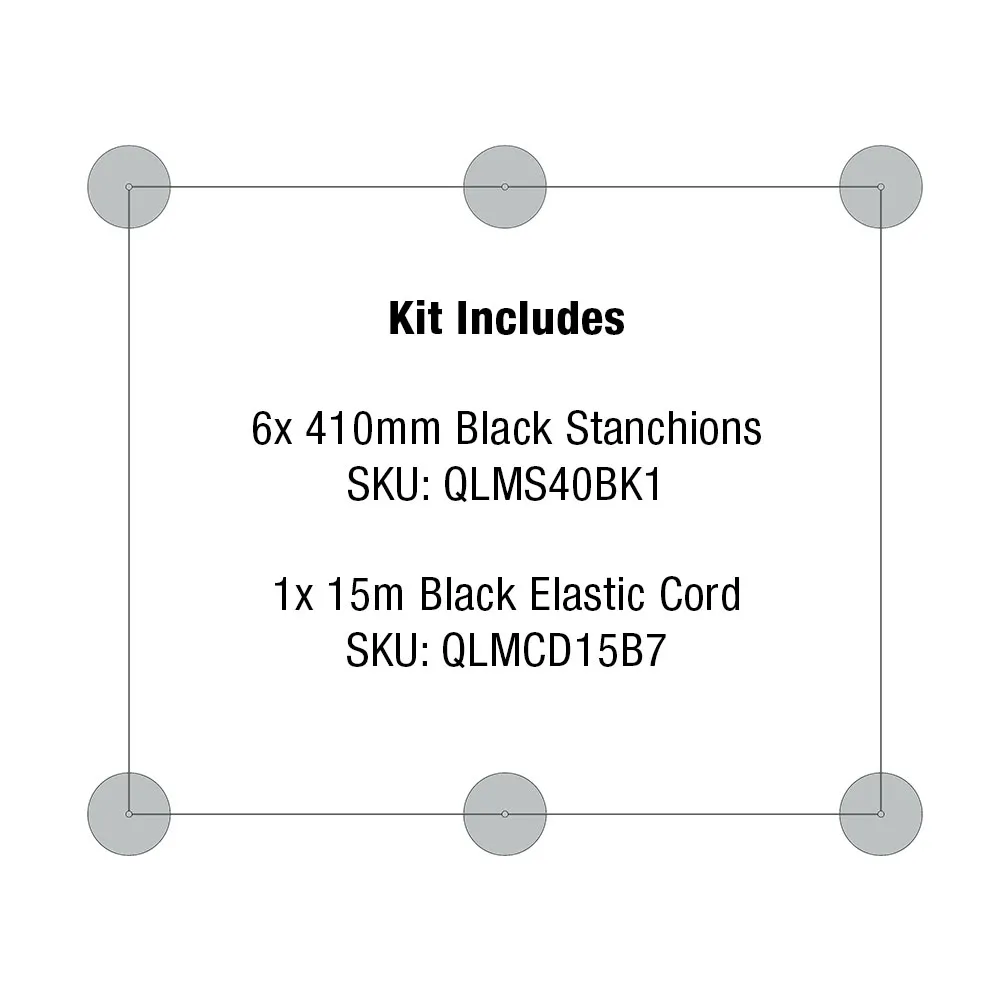 - Rope barrier includes 6 slim profile black posts that are 410mm tall!