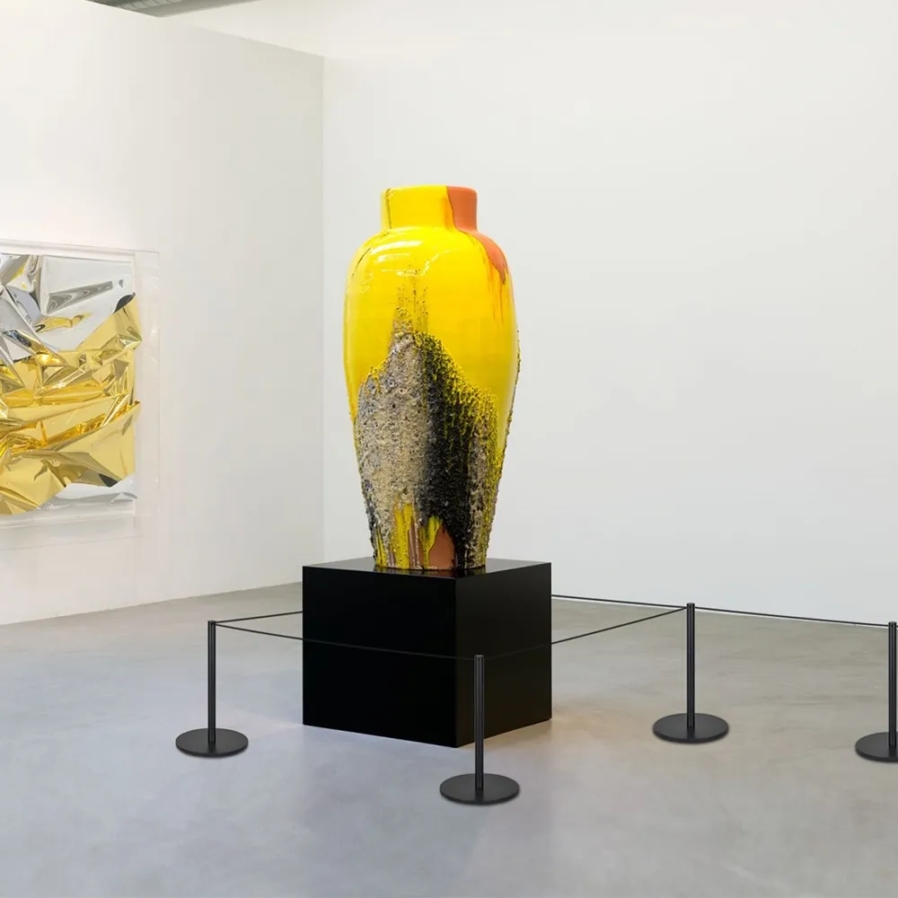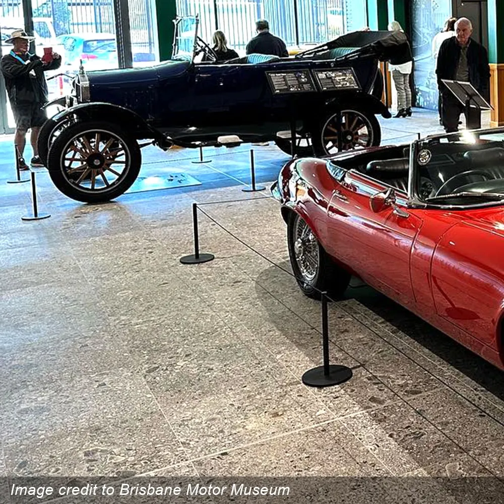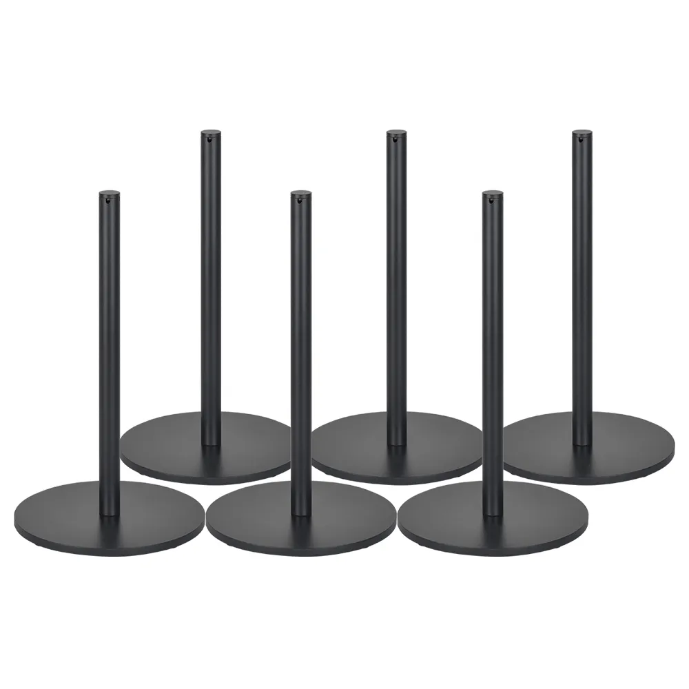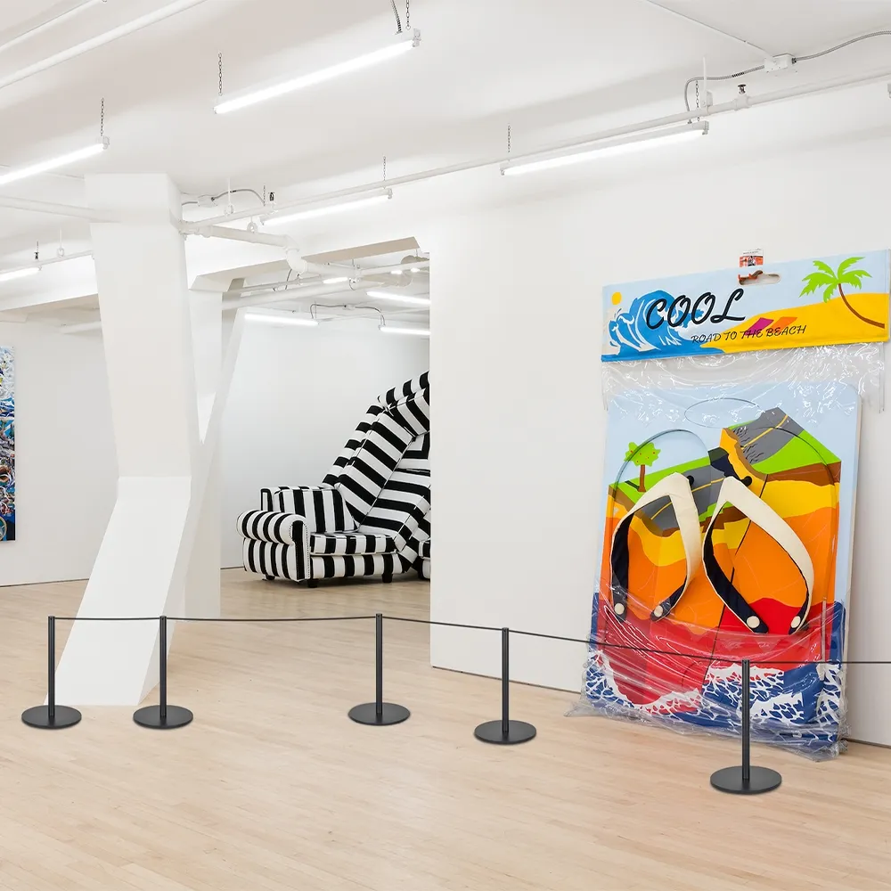 This rope barrier, popularly used as museum stanchions, is a full set that includes (6) stanchions that are each 410mm tall. The slim profile posts are only 25mm in diameter, and when combined with the short height ideal for exhibitions and galleries where you want to cordon off an area but have little visible impact for viewing. Each queue stanchion has a screw- top that secures ropes into place. There are (4) cut-outs in the post to direct the elastic cord into four different directions to make sectioning off exhibits at museums, car dealerships, and art galleries simple.