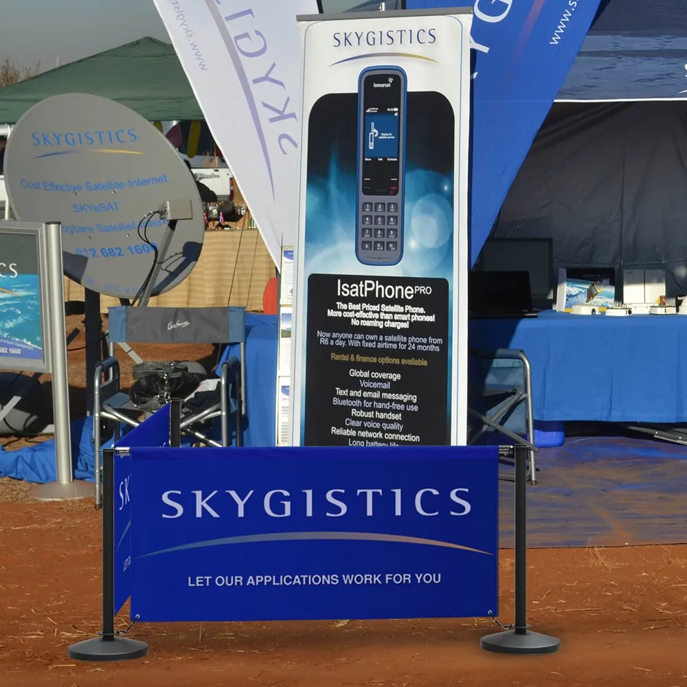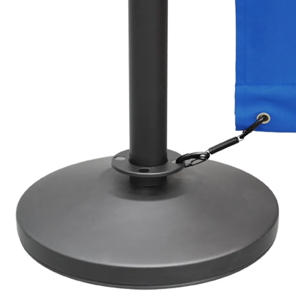 The banner styles include blue, red, black, & white colour options to better match your decor. Bars are used to keep the units taut even when there is a breeze. The durable stainless steel construction of the poles is complemented with a black finish to look stylish anywhere!