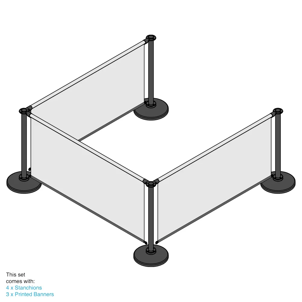 The cafe wind barriers have (4) stanchions included to hold up (3) banners. There are many configurations possible with these units! The promotional barrier, cafe wind barriers are able to be combined to meet your business expectations and create a workable area!