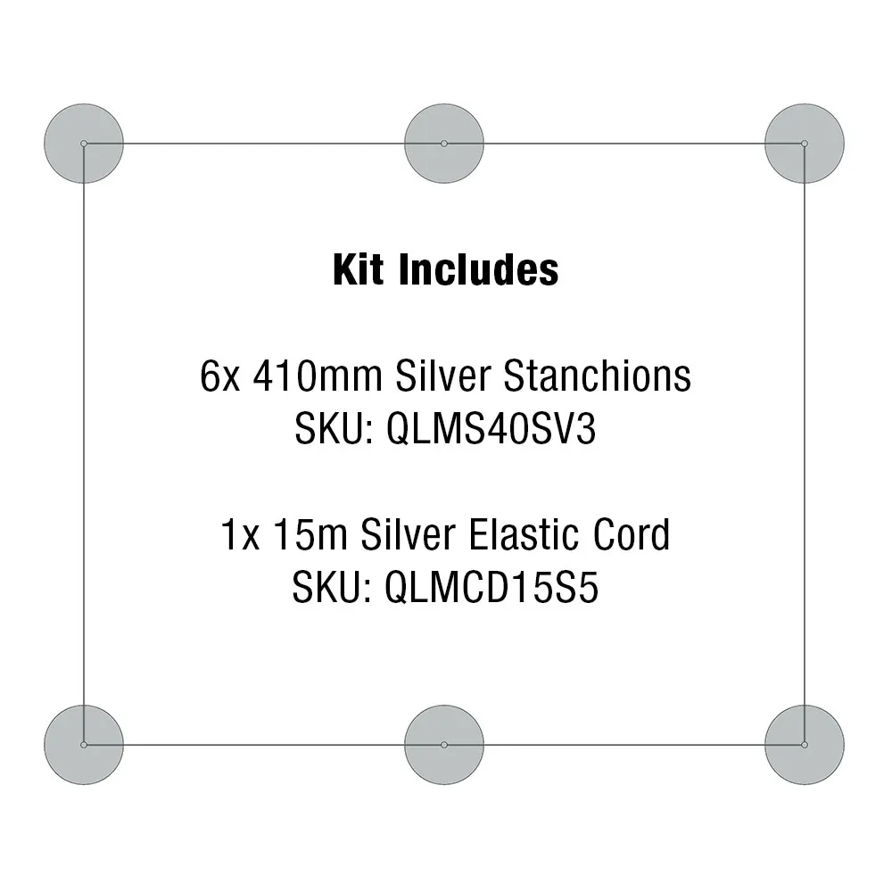 - Cordon off barrier includes set of 6 stanchions that are 406mm tall