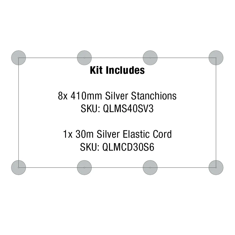 8x 410mm Cordon Off Barriers with 30m Elastic Rope