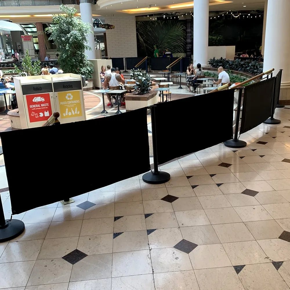 These outdoor barriers feature stanchions that have a black finish to easily match with any decor. The stainless steel construction of these posts, along with the hard-wearing polyester banners, ensures a long-lasting display even in heavily trafficked areas! The 1m height of the barrier provides ample protection from breeze as guests enjoy their time, making these an easy purchase for your business today!