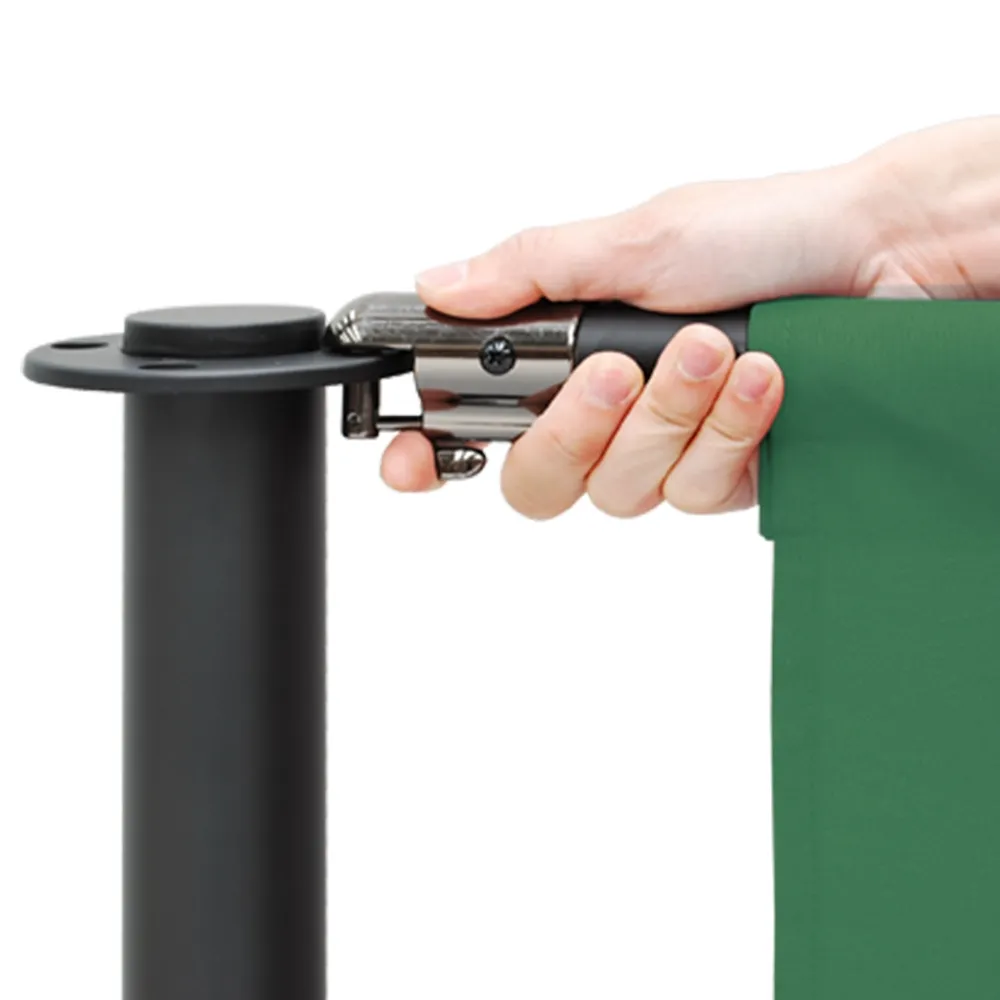 - Spring-loaded clips attach to stainless steel stanchions with black finish for easy set-up!