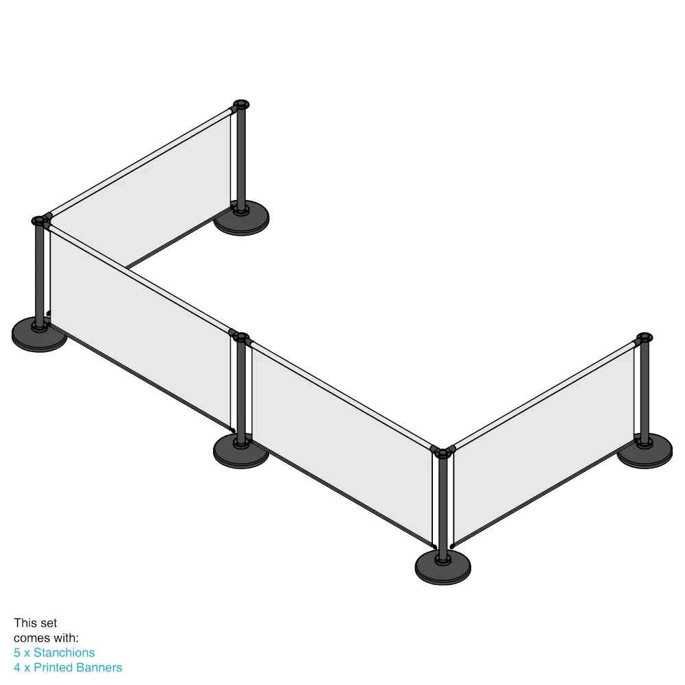 A outside barrier features banners made out of nylon-weave fabric. The outside barrier has (5) posts and (4) banners for creating a surrounding area. The posts have a plastic ring around the bottom of the base, helping to prevent scratches to floor surfaces. You can purchase and combine multiple units to create a unique configuration that fits your needs exactly!