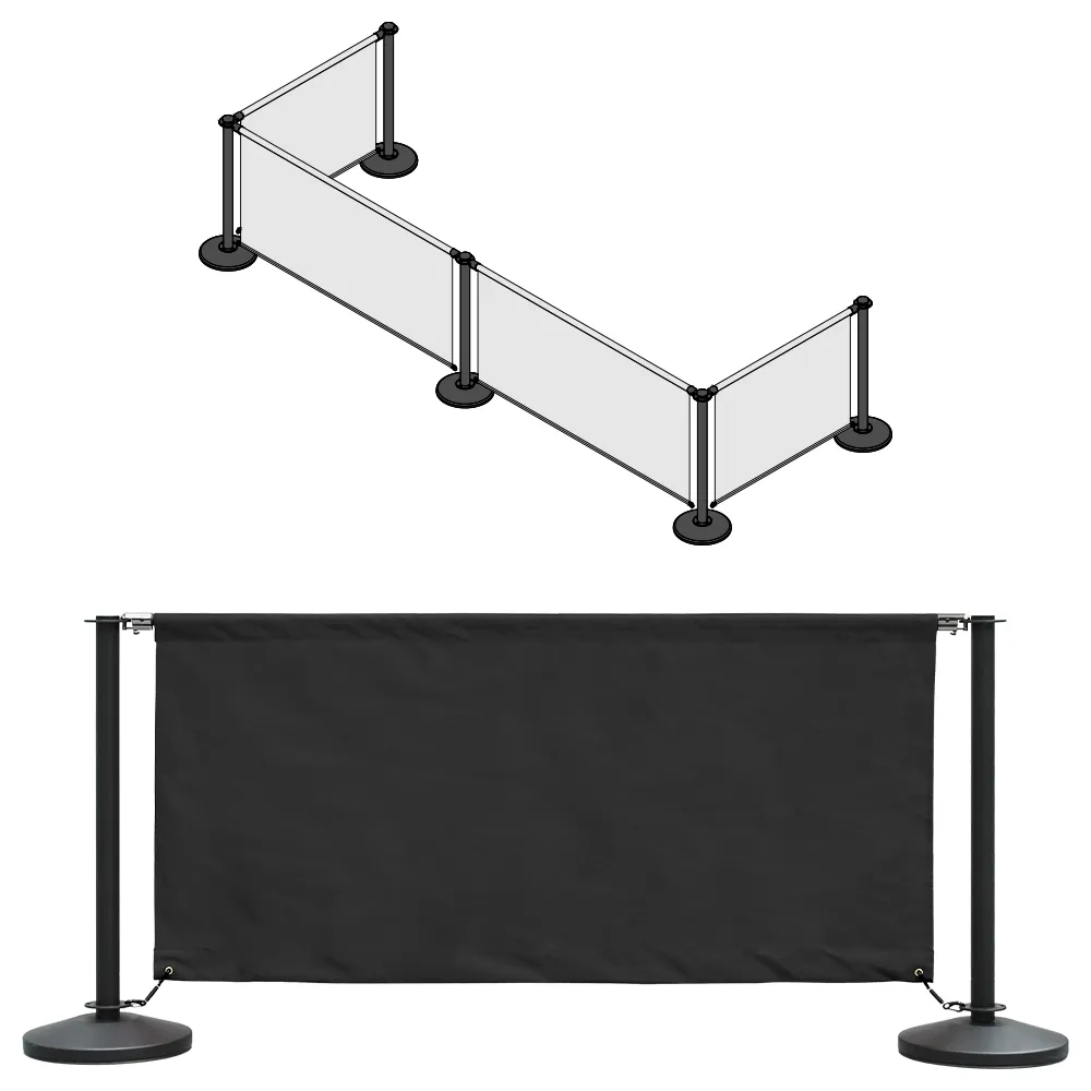 Cafe banners, crowd control barricades, and other breeze barriers use stainless steel stanchions that feature a black finish that brings style to any location. The banners that are included with these displays are made out of polyester fabric. The breeze barriers have a heavy weave, and when combined with the stainless steel stanchions, can be used in any location, including heavily-trafficked areas, without issues for years to come!
