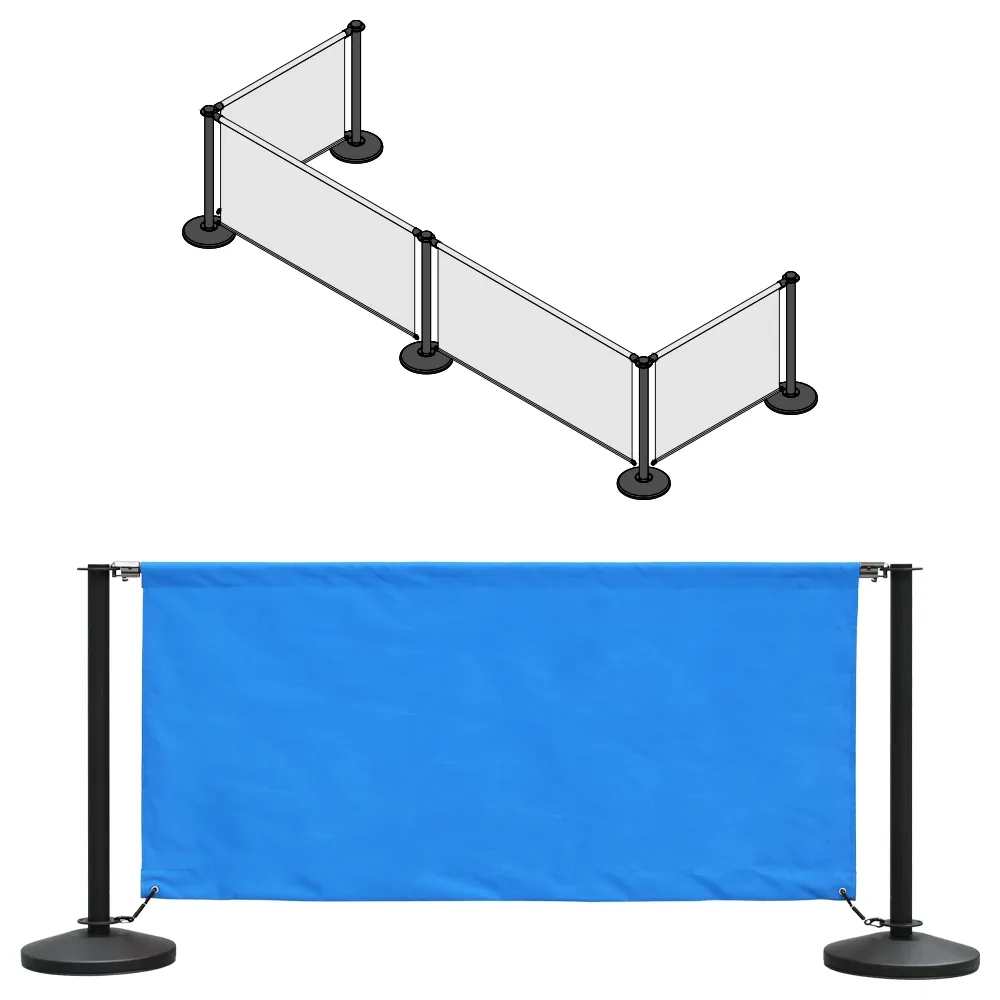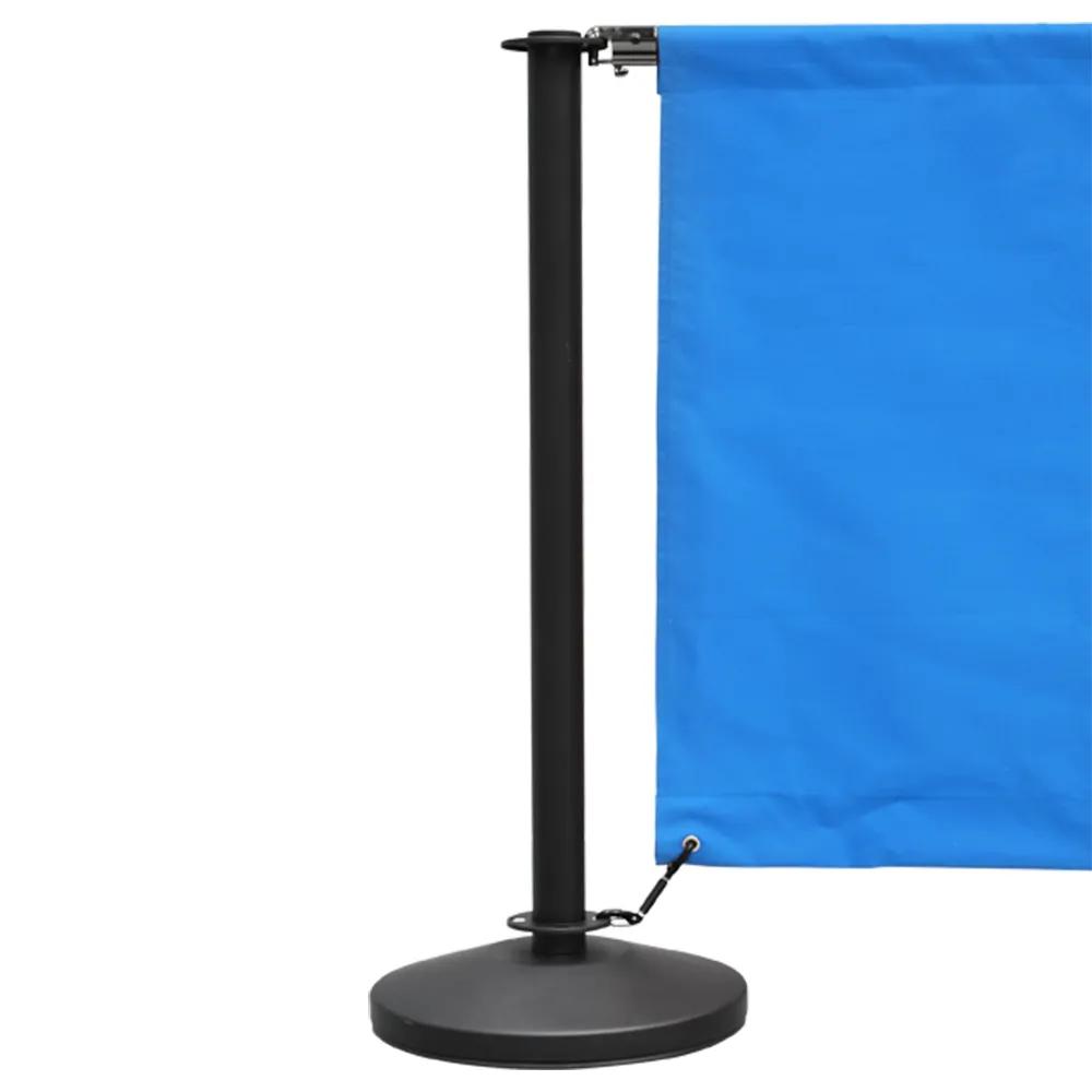 This wind barrier helps prevent breezes from affecting customers as well as form queue lines, guide patrons, and block off areas! This kit has four blue banners in two sizes, with (2) 1m long banners and (2) 1.6m long banners included. Each fabric banner is made from polyester to be hard-wearing and work well in all environments. They attach to the barrier posts using stainless steel rods that are threaded through a channel sewn into the top, with quick clips on the end to securely attach to the stanchion tops. The bottom of each has grommets to attach the (2) spring clips included with each banner to the base of the posts to keep them in place.