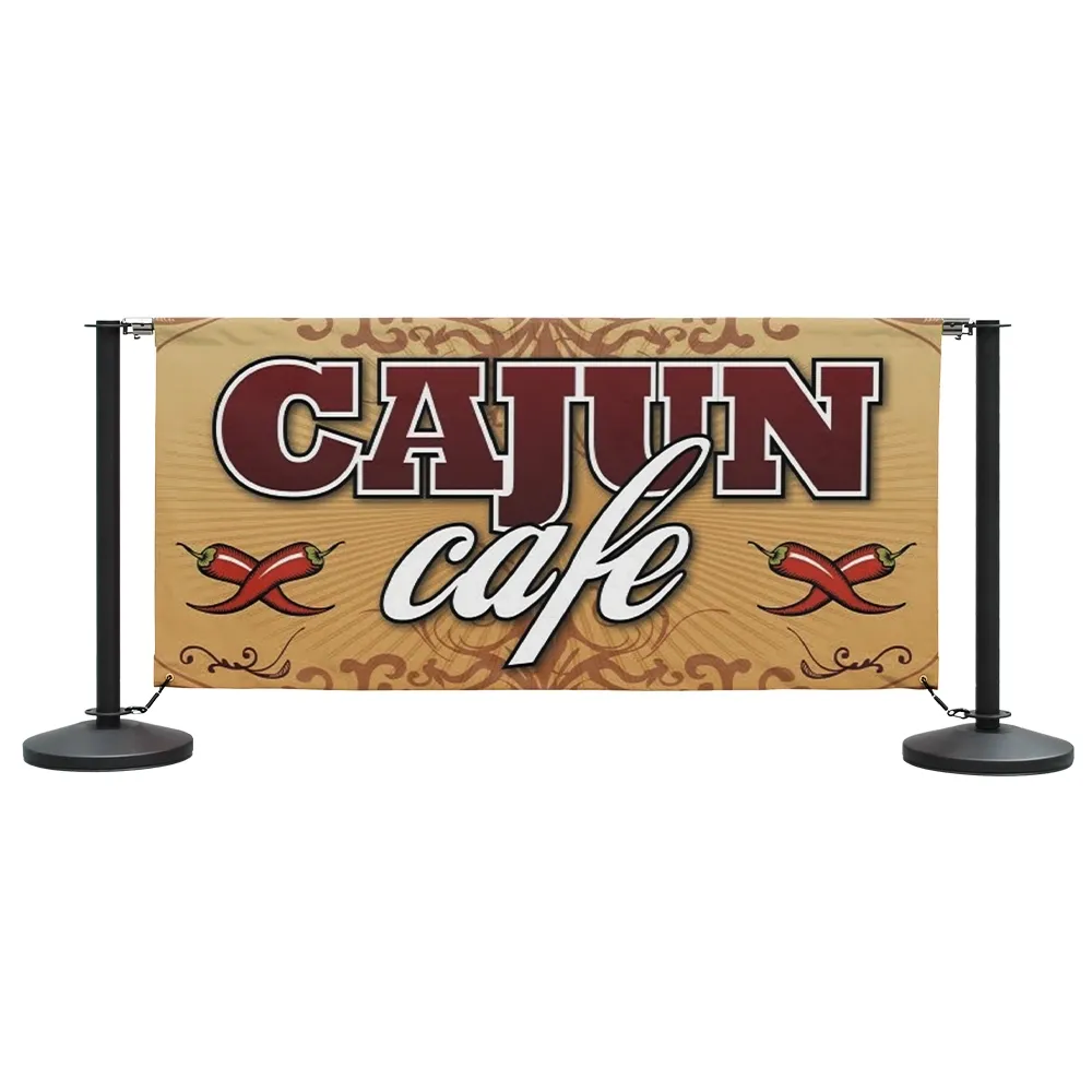 The barrier sign, also known as outdoor cafe barriers, has large banners for showing these graphics. Included with your purchase are (2) 1200mm long banners, and (2) 1800mm long banners, a typical size for use at cafes! This barrier sign strings these through (5) posts that are made of stainless steel with a black finish for a durable display that will last for years.