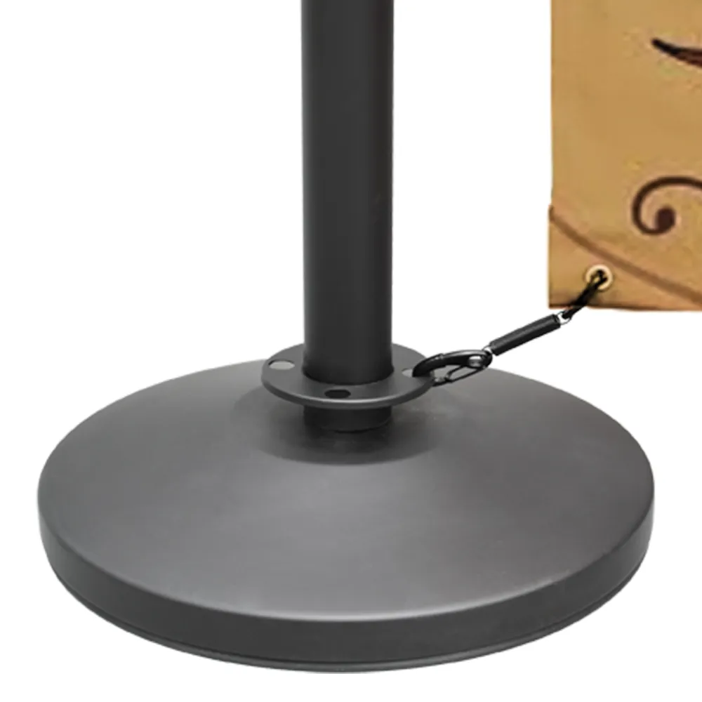 There is a plastic ring on the base of the each stanchion that helps to prevent damage to floors when used at indoor venues. Aside from being an ideal cafe display, these barriers make a great crowd control measure and helps guide visitors to their destination!