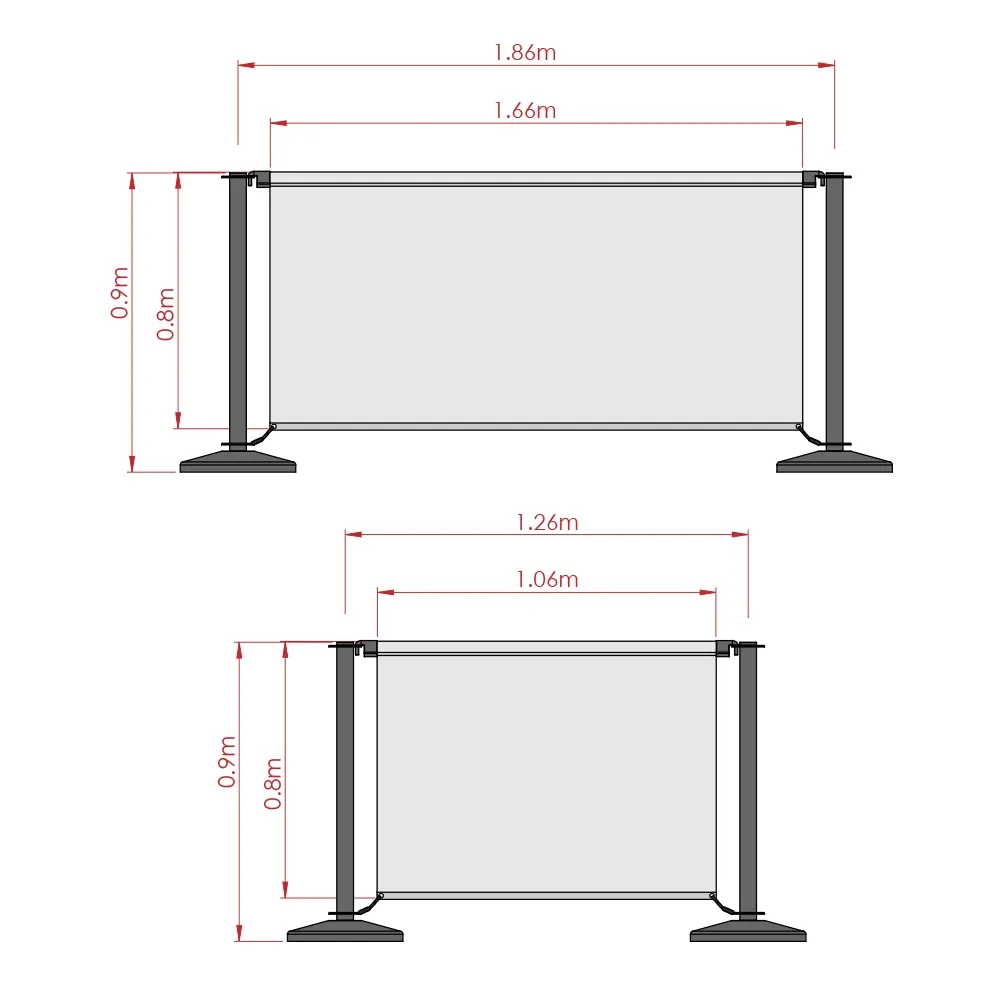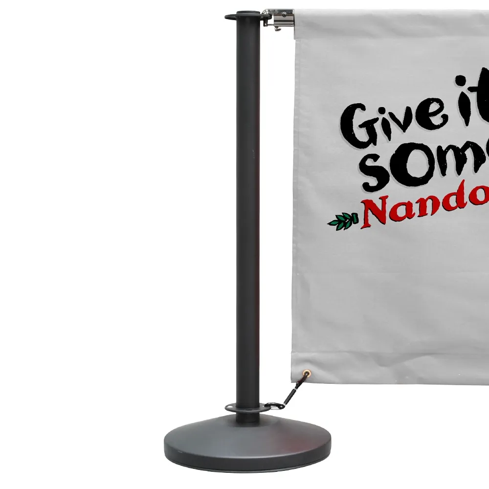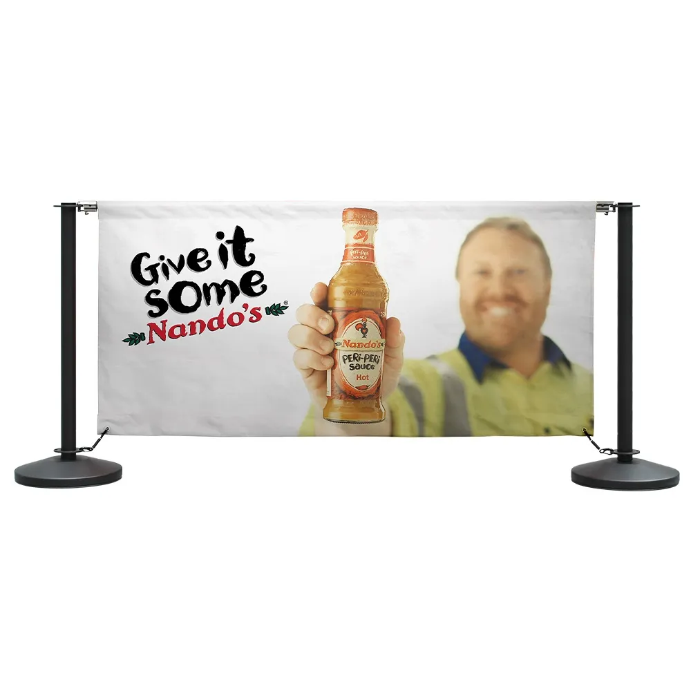 Branded cafe barriers have your custom designs printed on both sides to increase brand awareness and match your location perfectly! There are two sets of banners included with this kit, (2) are 1.6m long and (2) are 1m long to make creating an area easy. A digital printing process using dye-sublimation is utilised to ensure true to design depictions of your graphics in vivid, full colours. Our in-house team is available as well to help with designs, with different tiers available to choose from depending on your needs. Each banner has a channel sewn into the top to allow the stainless steel rods to be threaded through so the fabric can hang between the stanchions. Quick clips ends securely attach to the top of the posts, with spring loaded clips attaching to metal grommets on the bottoms of the banners.