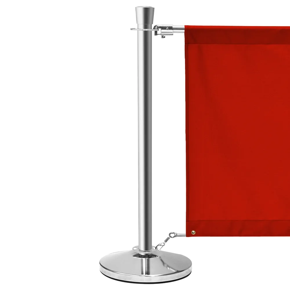 The stainless steel construction of the (8) posts have a polished chrome finish that looks great in any location. The barriers uses clips to attach to the posts, a better method than solely hooks. The included (7) banners are available in multiple colours, able to suit any decor easily. The fabric banners are used in a number of locations to create an outdoor area, including market shops and even restaurants! Create a queue management system with these posts with a polished chrome finish!