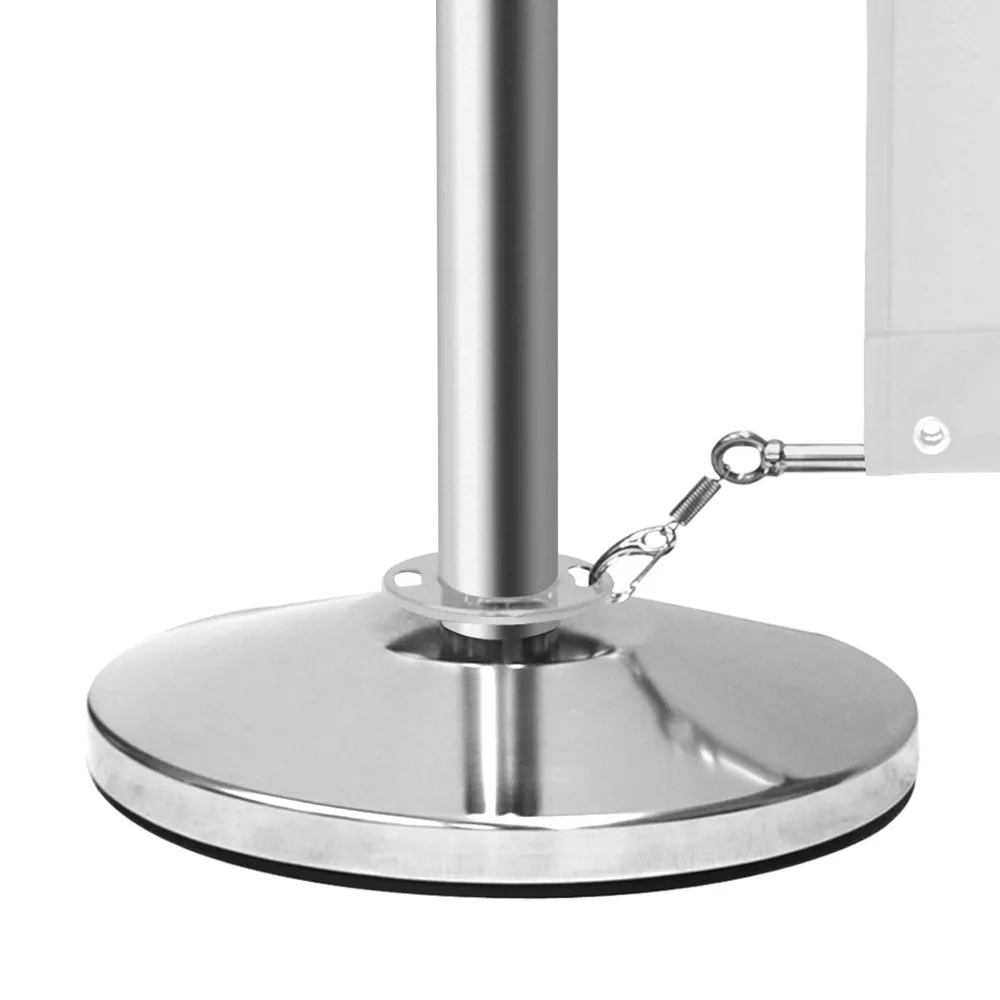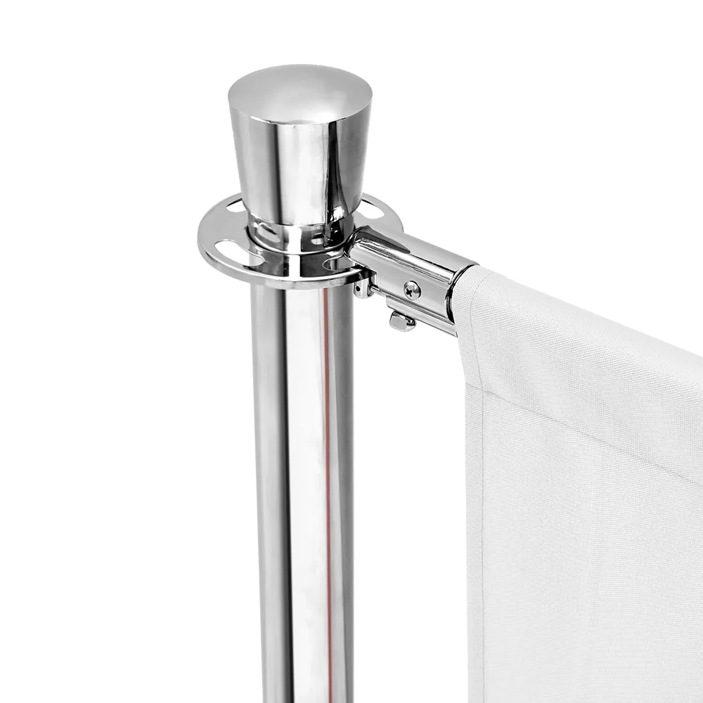 The cafe pavement barrier, like restaurant breeze banners, utilise (8) stanchions that are each .9m tall and have a polished chrome finish for an attention-grabbing look! The posts feature 4-way adapters below the tulip head topper and above the base to allow banners or VIP ropes to go out in multiple directions easily. There is a rubber ring around the bottom as well that prevents damage to floors when used indoors. A wide range of different colours and configurations is also available, including options featuring your custom designs digitally printed in full colour on the fabric! Slimline Warehouse offers fast shipping same day with this and most other in stock products if purchased by 3pm AEST, buy online today for fast dispatch to you!