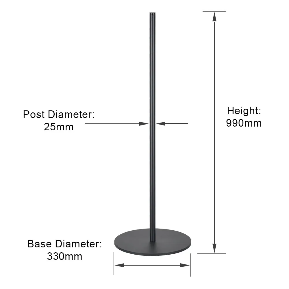 - Low profile barrier set has 4 posts, each 990mm tall with black finish