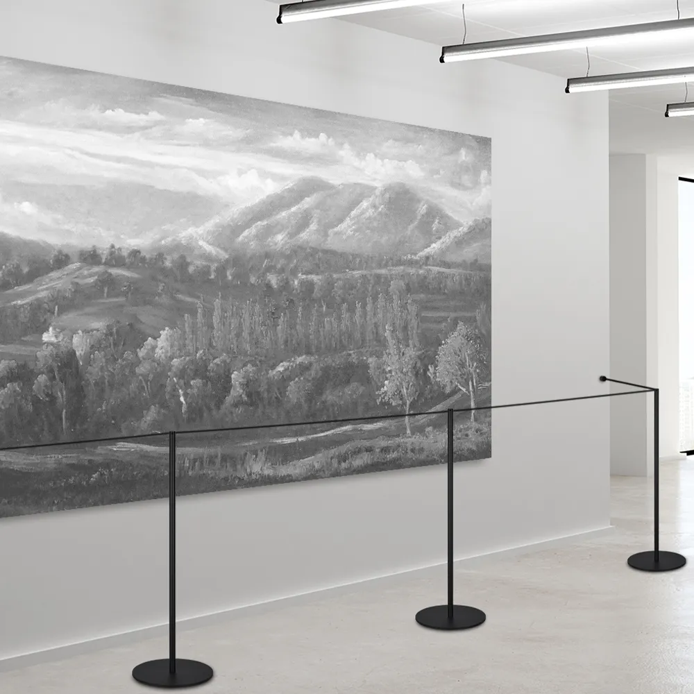 This low profile barrier is ideal for use in art galleries and museums, where it's upscale design cordons off areas without blocking view! The gallery barriers features a set of (4) posts, each the standard height of 990mm and weighing 7kgs to be easily moved into place. Most of the weight of the stanchions is in the base as well, providing stability to help the post to not tip over during use. The top of the post screws in to secure the cord in place, with (4) cut-outs placing the elastic rope in different directions to easily section off exhibits or create a queue.