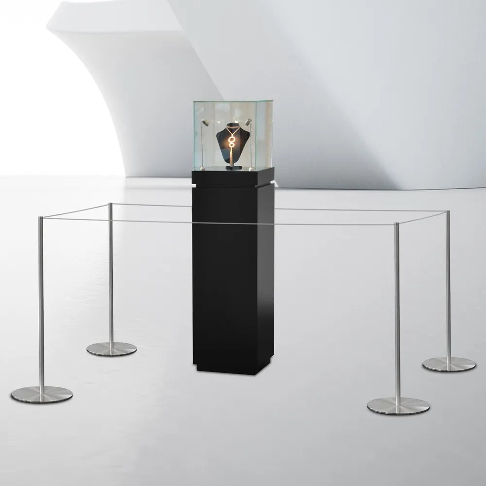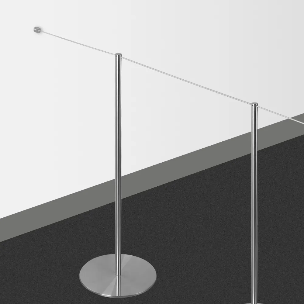 These bollards and rope are a set that has 4 total posts included. These queue control barriers should be spaced about 1.5m to 1.8m apart for ideal use. In place of standard belts or VIP ropes, these posts utilise elasticised cord that is grey to complement the posts and only 5mm in diameter to section off an area or exhibit to visitors without blocking their view! This elastic cord is meant to be cut to length as well, making it easy to customise the display set for you needs.