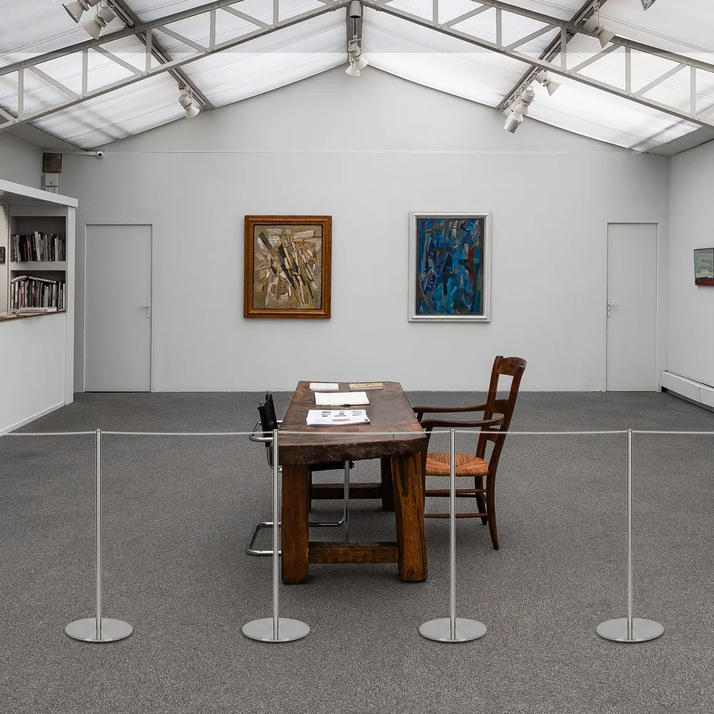 - Museum rope barriers are a low profile system using a 15m grey elastic cord