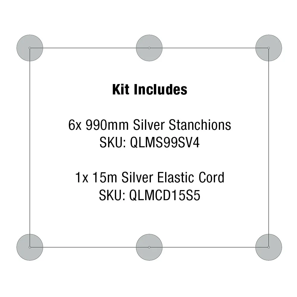 - Set includes (6) 990mm tall stanchions with brushed silver finish