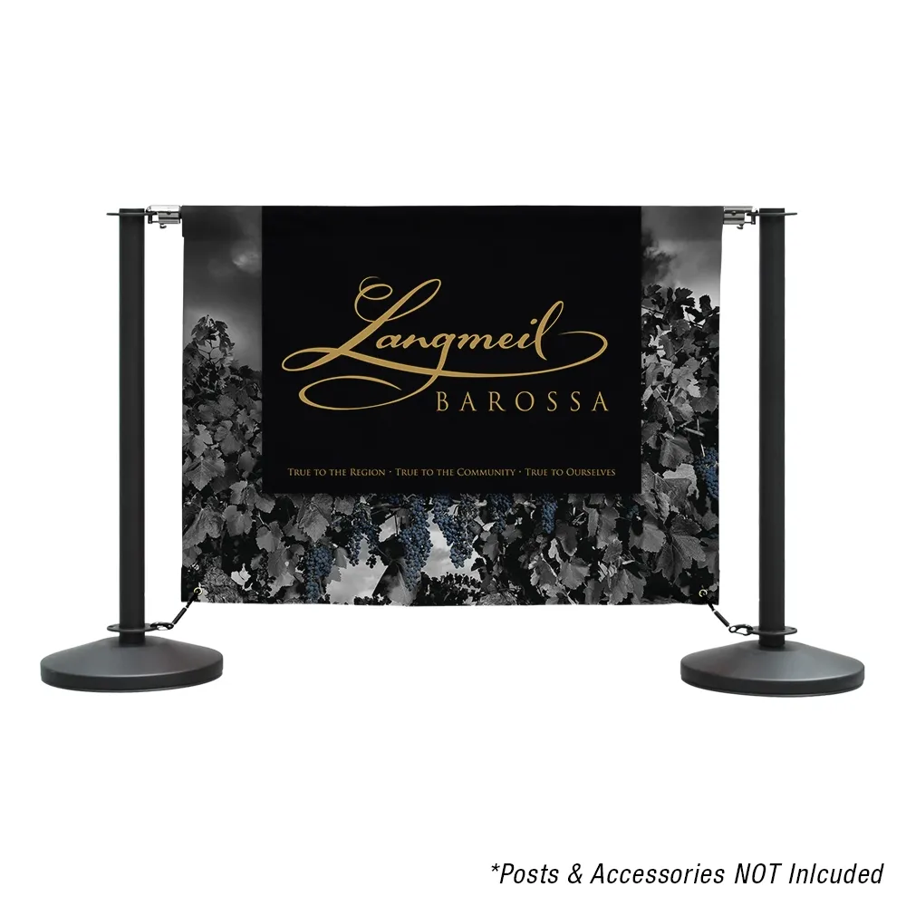 The cafe printed banner, like many breeze banners, is made from hard-wearing woven nylon that is suitable for both indoor and outdoor use. There are metal grommets in the bottom that allow spring clips to connect to the bottom of barrier posts. This allows the fabric to move with breezes without being blown upwards. A channel sewn into the top is designed for stainless steel rods with our barrier posts to be threaded through to hang the fabric down. Order today for fast shipping to anywhere in Australia, only from Slimline Warehouse!