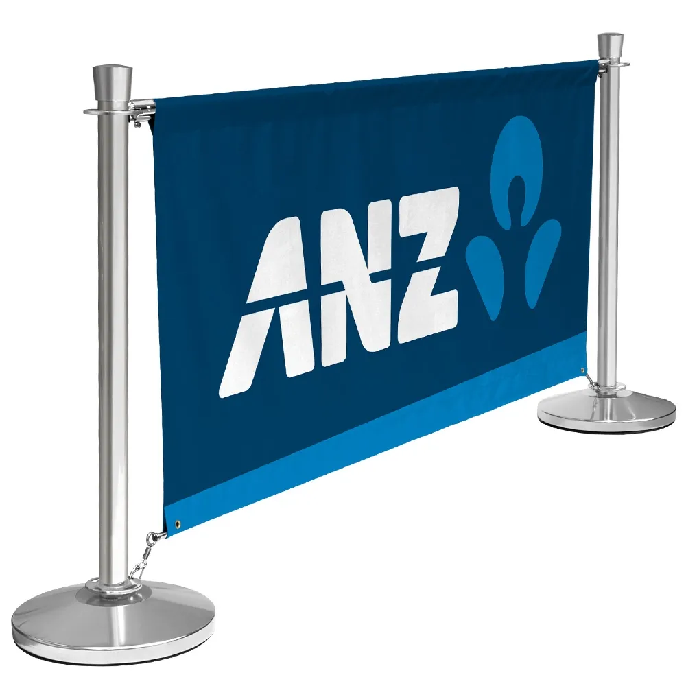 These custom cafe barriers have your design digitally printed in full colour, making it easy to brand the display outside of your shop for passive advertising to customers and passersby alike. A dye-sublimation process is used, resulting in vivid colours and rich imagery that provides a true depiction of your designs. The banner is 1.8 x .8m, offering heaps of space for your design team to get creative or place a large logo outside of your cafe, restaurant, museum, information centre, attraction, and more. The banner is made from durable woven nylon, allowing for long-term use outside of your business. A channel is sewn into the top for placement of the connecting pole of your cafe fence, with grommets on the bottom for attaching the lower connectors. Purchase online today for quick shipping to anywhere in Australia, only from Slimline Warehouse!