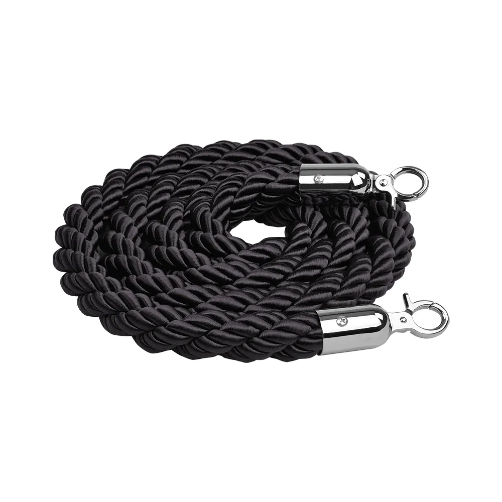 These rope bollards are a full set that helps you set up a queue or cordon off areas in a stylish manner! The barrier post ropes are made from nylon and have a braided design for a truly upscale look. The black colour of the braided rope perfectly complements the stanchions with a neutral look that fits in with the décor of any location. Each end of the rope has chrome clasps to securely attach to posts to make directing visitors in a queue and setting a distance around exhibits simple.