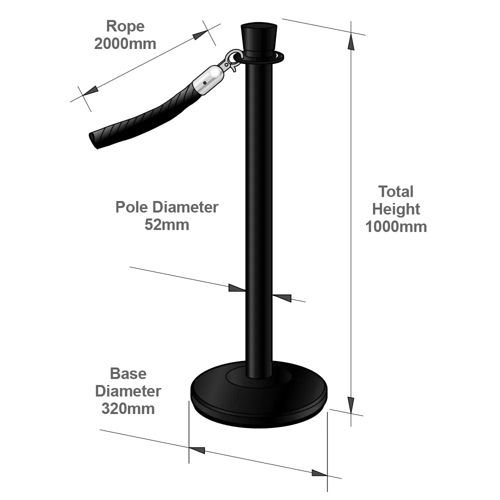 • Rope bollards include (2) black matte stanchion posts that are 1m tall