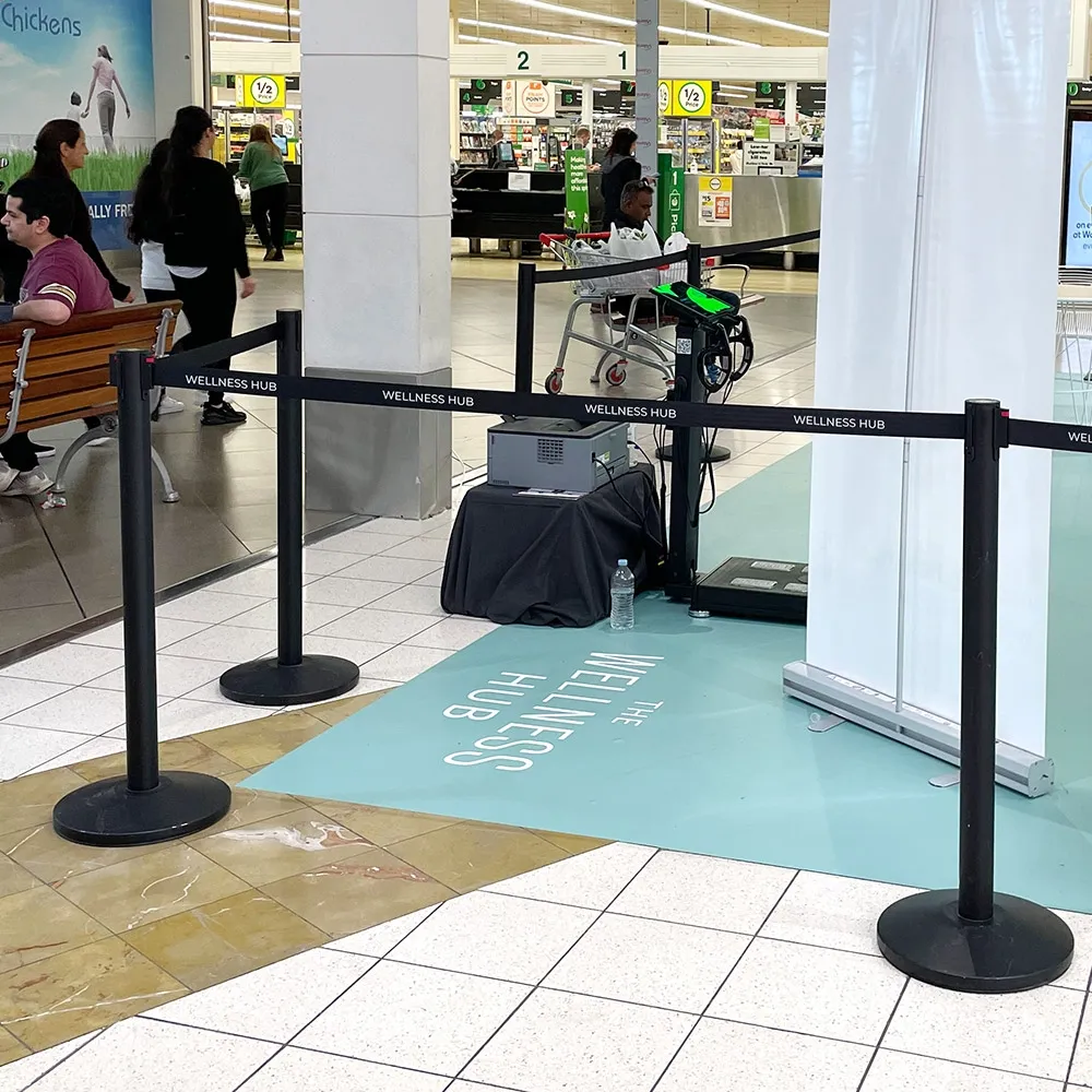 - 1050mm tall stanchion with custom printed belt
