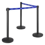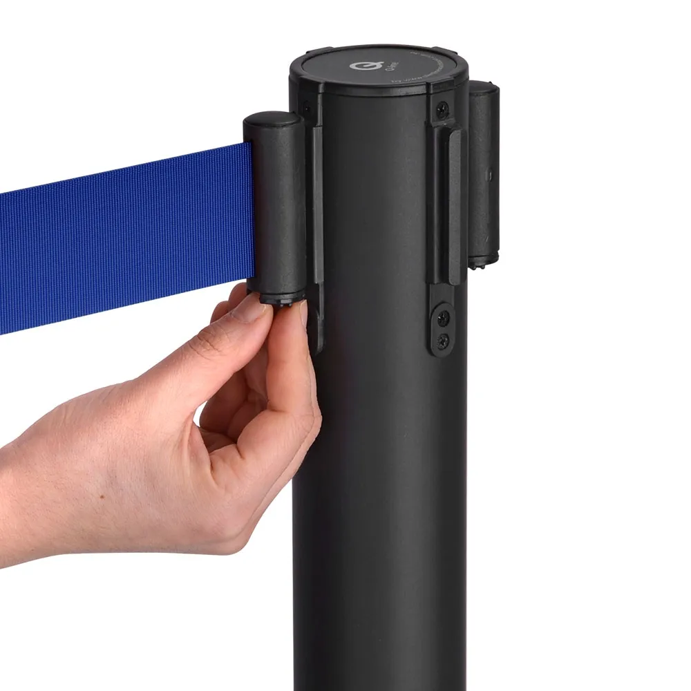 This crowd control post is made from stainless steel with a matte black finish, offering a sleek look that is perfect for retail stores, museums, banks, airports, government agencies, and more. The retractable belt barriers have a 1.8m long blue woven nylon belt that is highly visible and easily reaches out to attach to wall clips and other posts! The tamper-proof clip on the end ensures the barricade remains in place once set-up.
