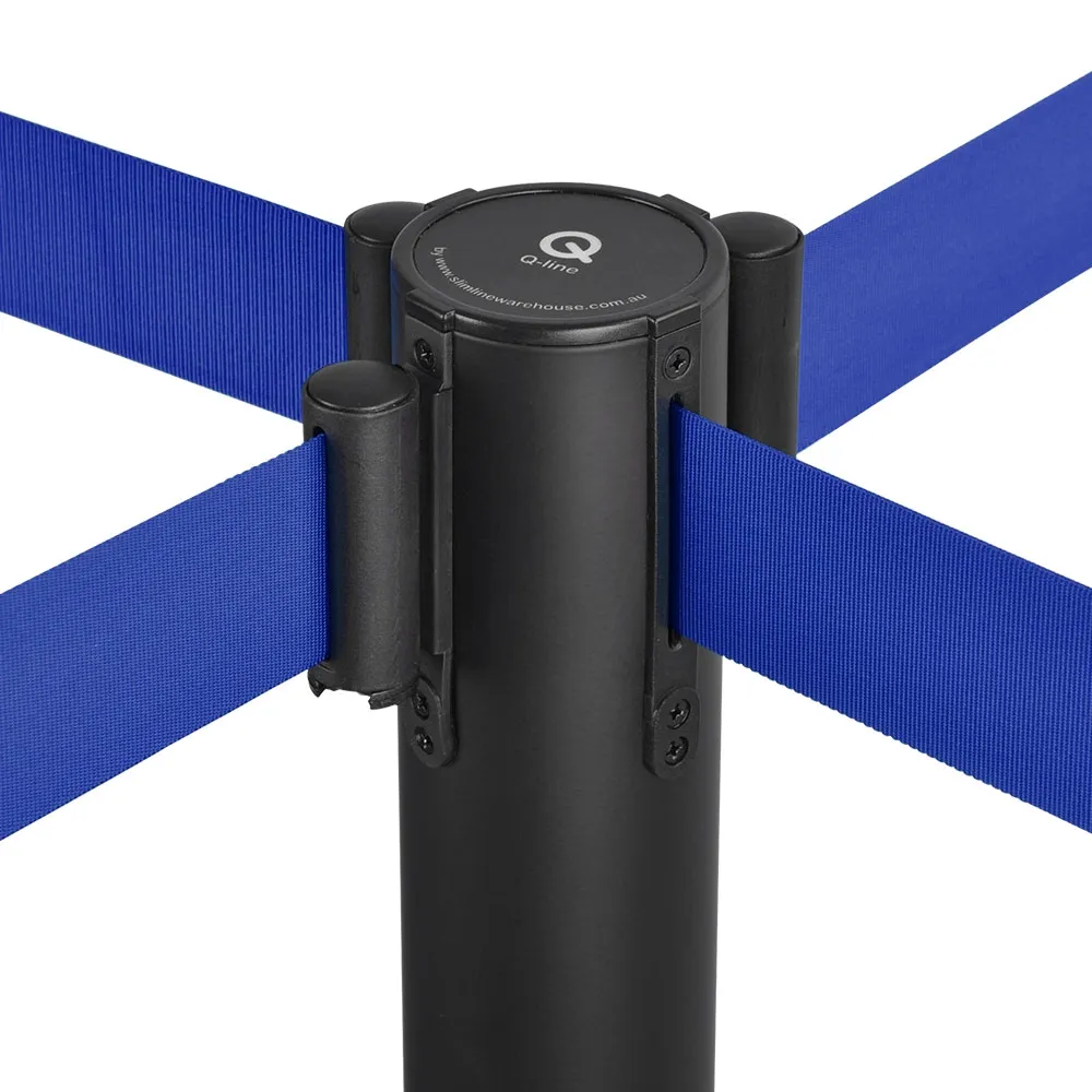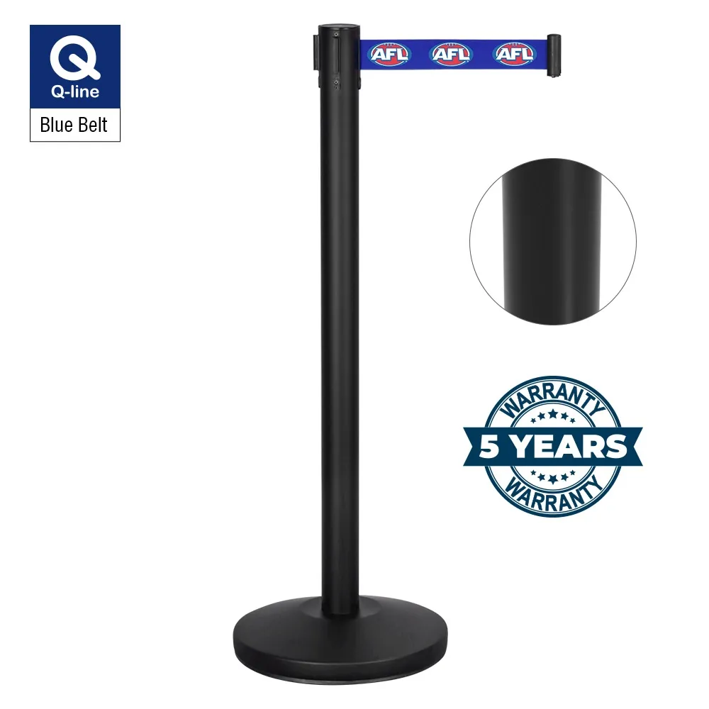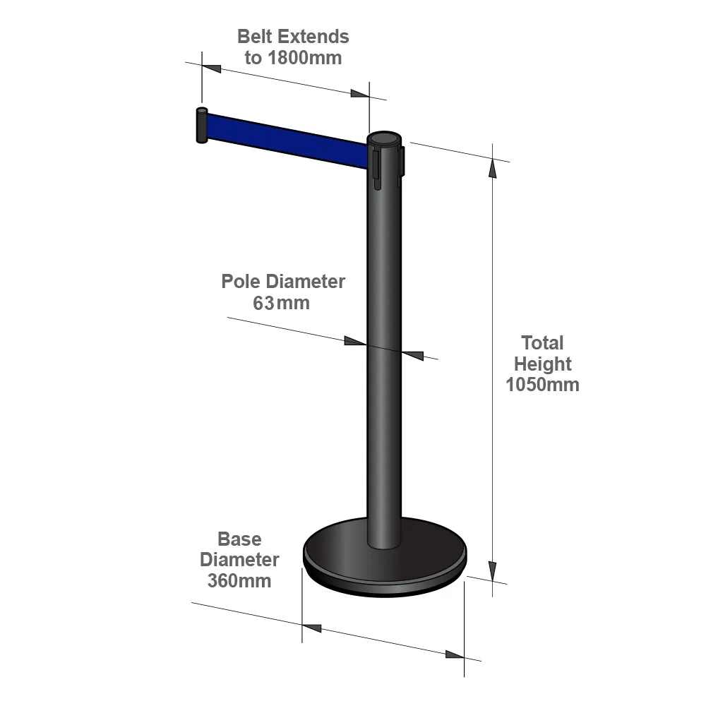 Steel stanchions have a matte black finish that provides a stylish look that works within any décor. The retractable belt barriers offer custom printing in 3 colours on the belt to advertise with your company logo to market to visitors without using up additional space. The barricade belt itself is blue in colour & 1.8m long for a unique look that is easily seen by visitors to your location.