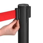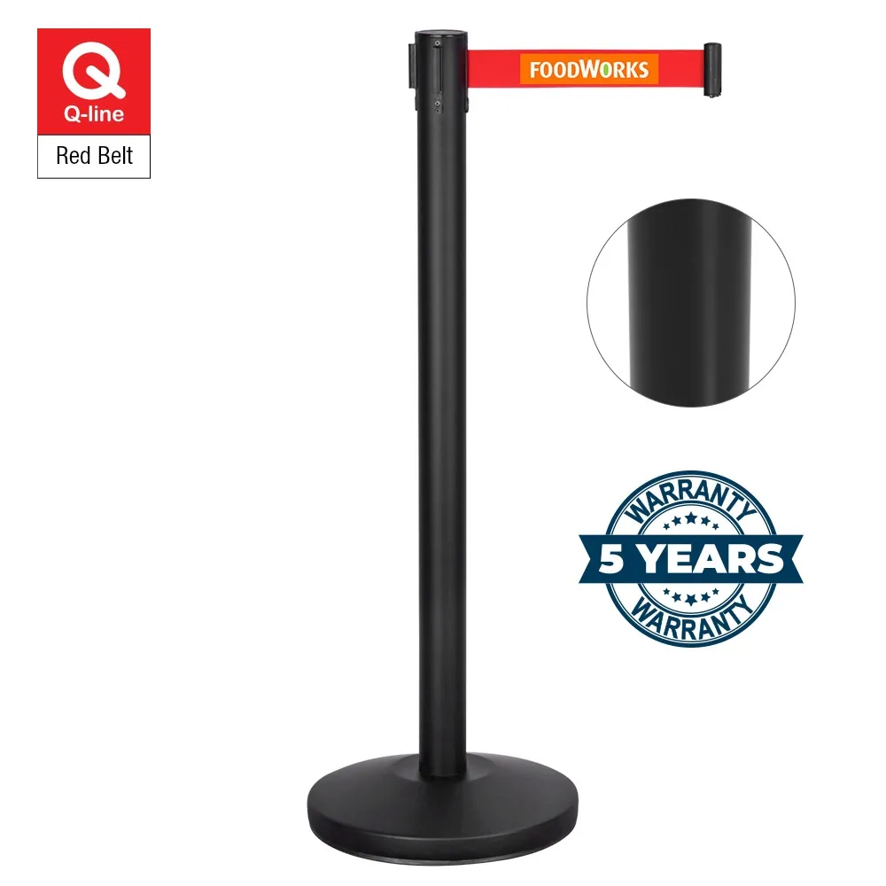 This stanchion is great for advertising at hotels, banks, airports, museums, shopping centres, and more. The retractable belt barriers feature custom printing, with 3 colours able to be used in your design that will be on both sides of the belt. The striking red barrier belt is highly visible, and with a total length of 1.8m, can easily reach out to other posts or wall mounted clips to create a queue or section off an area.