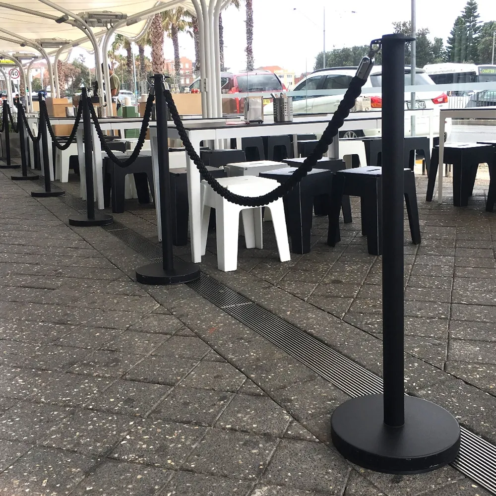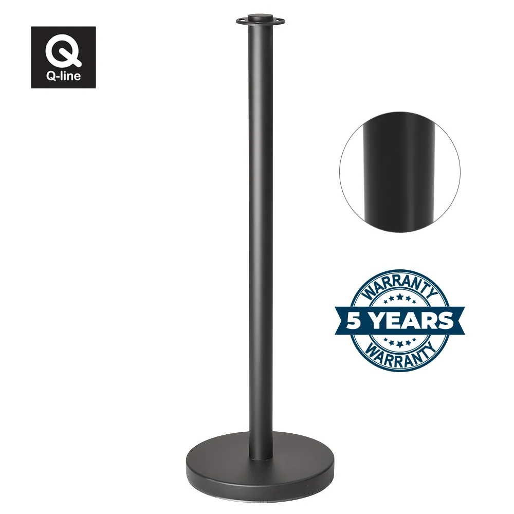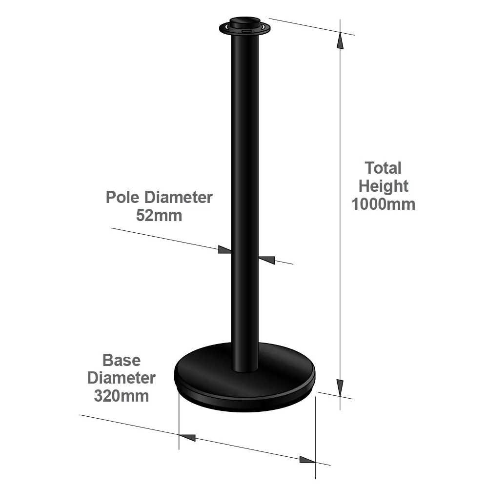 - These matte black barrier posts are finished with a very hardwearing black powder coat that will ensure they stand the test of time and they feature a 7kg base so that they won’t be knocked over in heavily trafficked public areas.