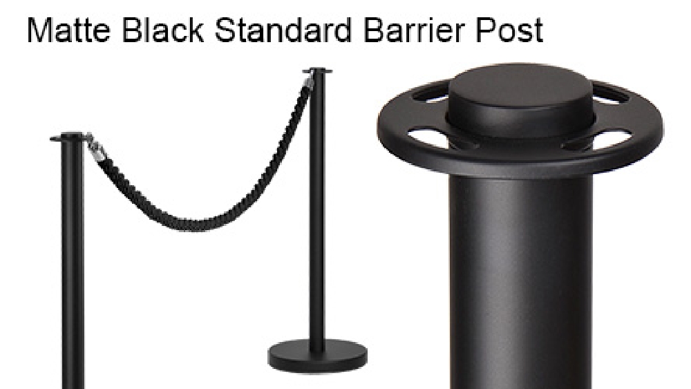 - Our matte black rope barrier post is a great way to add the prestigious touch of a rope barrier to your premises while keeping costs to a minimum. Here you are purchasing the post only but red, blue or black barrier ropes with gold or silver hardware are also available. If you don’t already own some queue barrier posts you might be interested in our set that come as 2 x posts and 1 x rope.