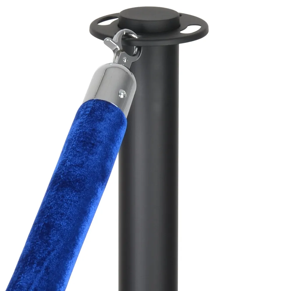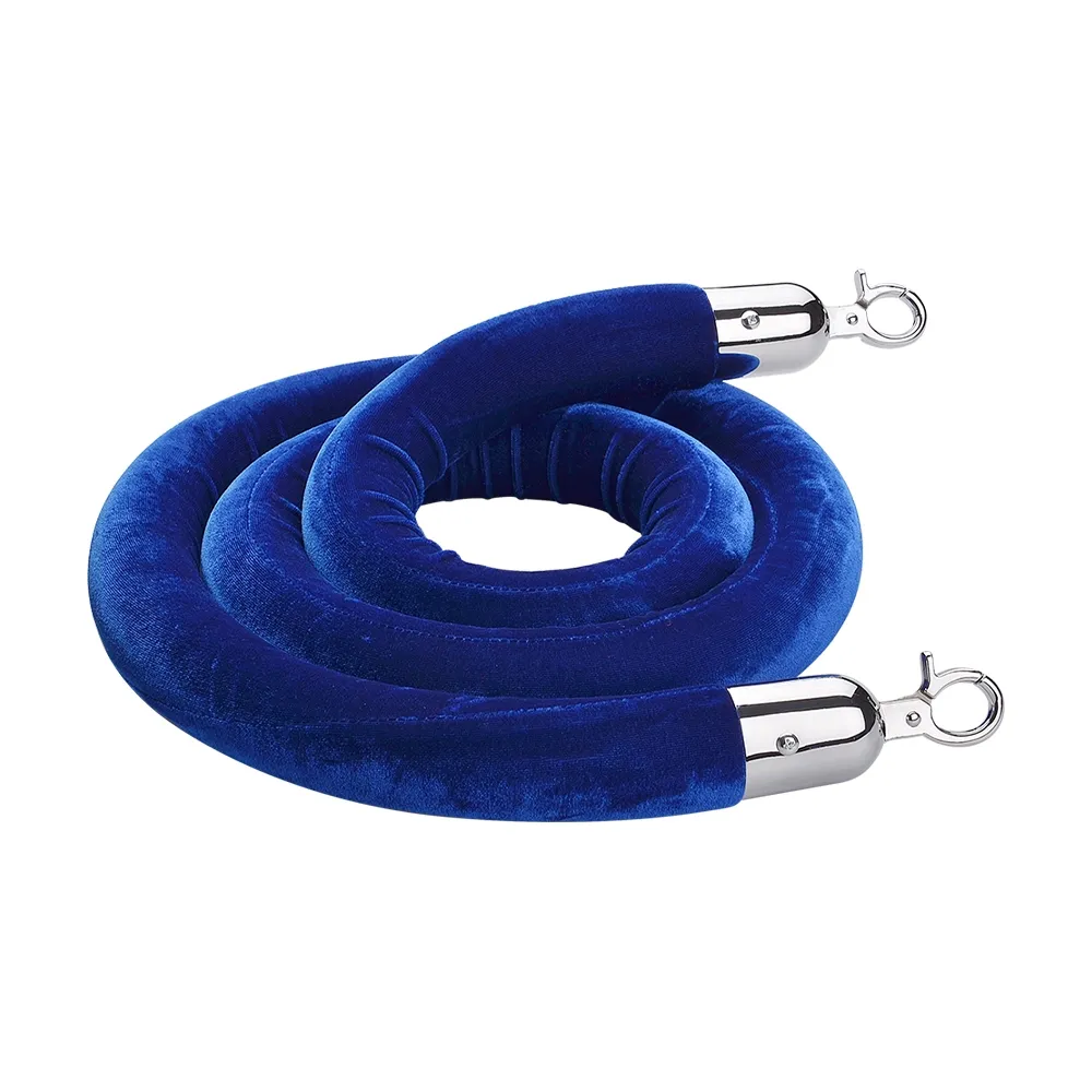 - Includes a plush blue velvet rope featuring polished stainless steel silver hooks. Up to 4 of these ropes can be attached to a single pole.