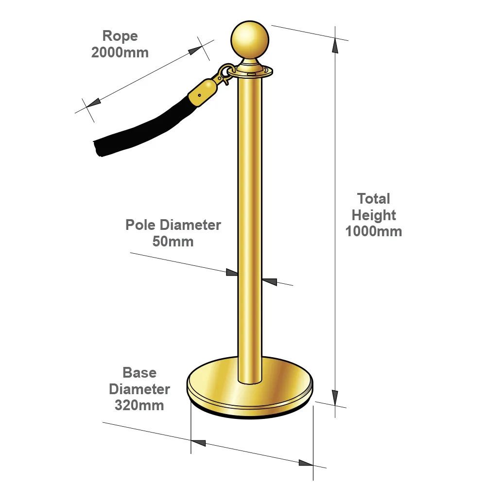 Please Note: These rope barriers are only suited for sheltered area use when the weather conditions permit. Please move stanchions inside during poor weather as they are not designed to withstand rain or moisture.
