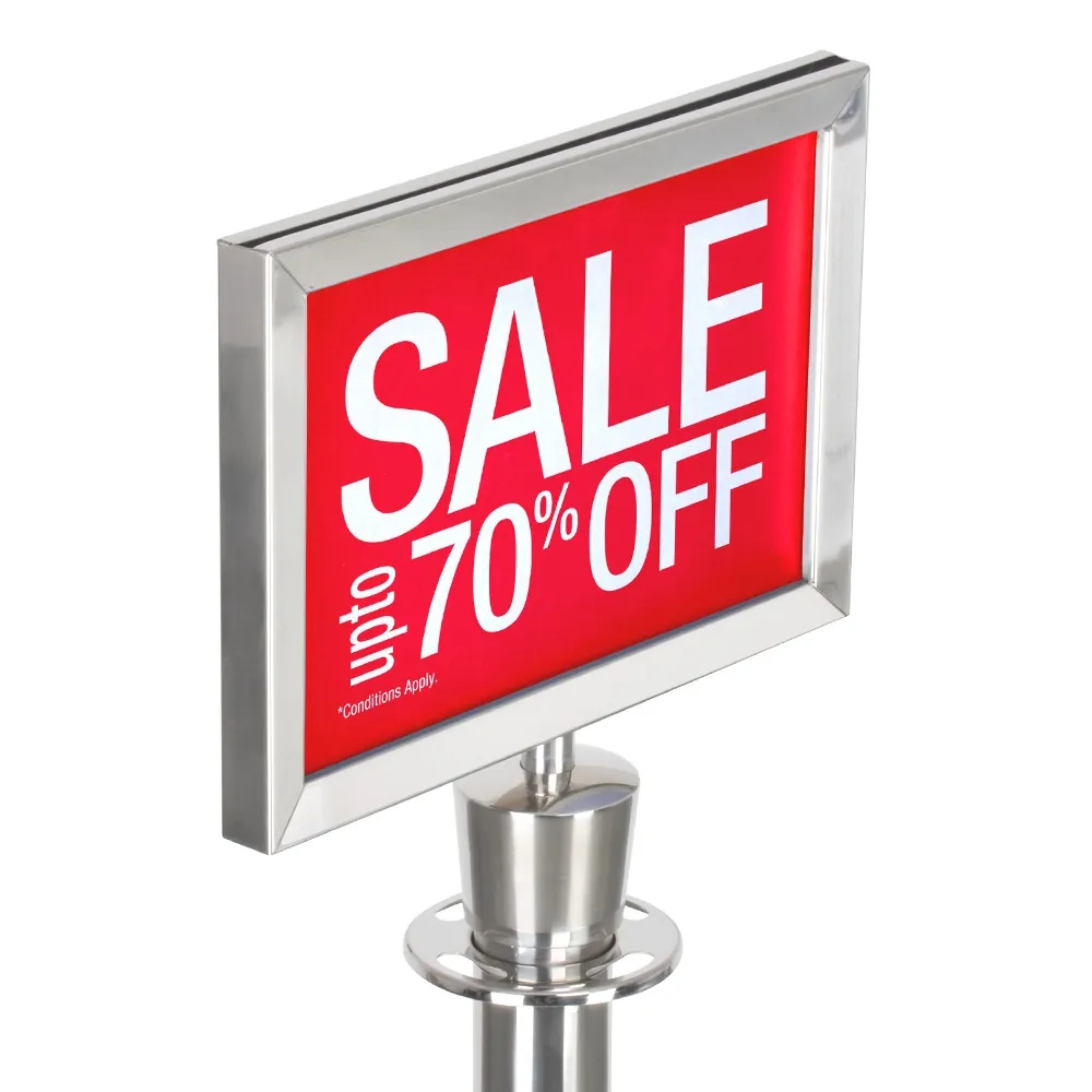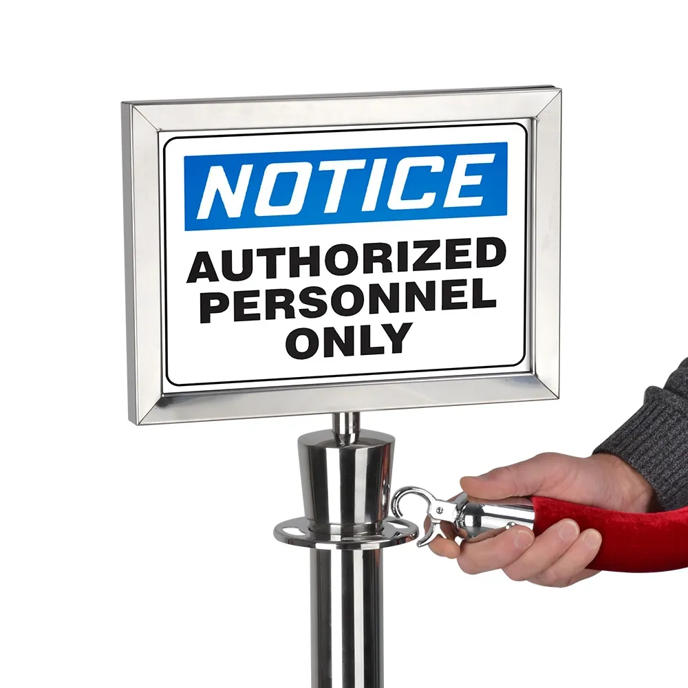 - These sign holders for rope barriers are constructed from stainless steel and polished to a chrome-look finish. They can be used with other rope barrier products from our Q-Line range