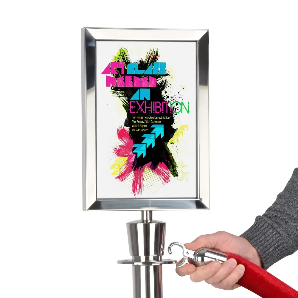 The poster holder for rope crowd barriers can be used to help direct traffic within your premises or simply add some extra branding or advertising space to your queueing set up.