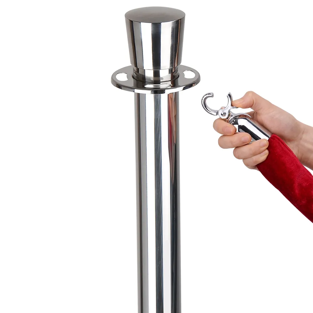 The rope barrier ropes can be attached at the top of the stanchion by simply unclipping the hooks. Up to 4 ropes can be attached at any one time allowing you to configure your stanchions or crowd control barriers in any format imaginable.