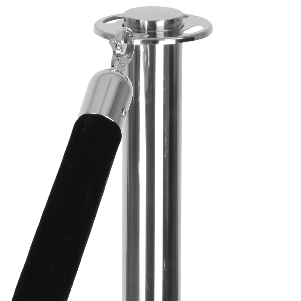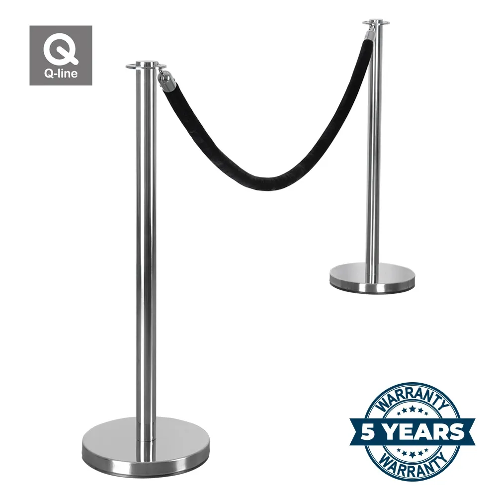 - These rope crowd barriers are fabricated from stainless steel and polished to a chrome mirror finish. This set includes 2 stanchions at 1.05 metres tall and a luxurious black velvet rope at 2 metres in length & 5cm in Ø. And they come with a 5 year warranty.