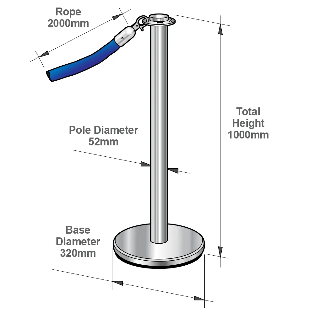 Please Note: These rope barriers are only suited for sheltered area use when the weather conditions permit. Please move stanchions inside during poor weather as they are not designed to withstand rain or moisture.