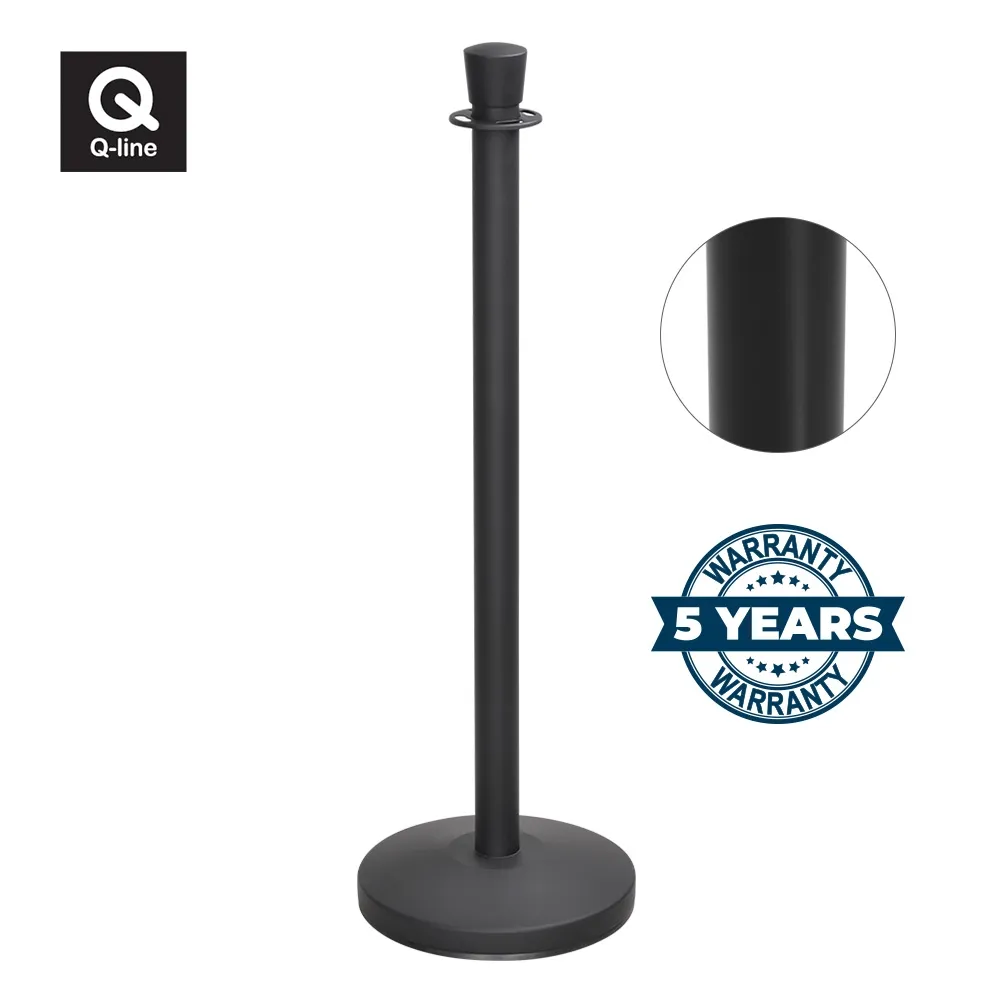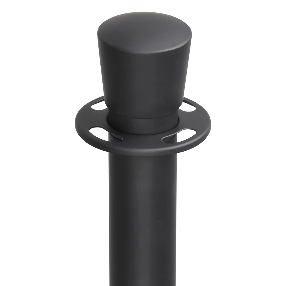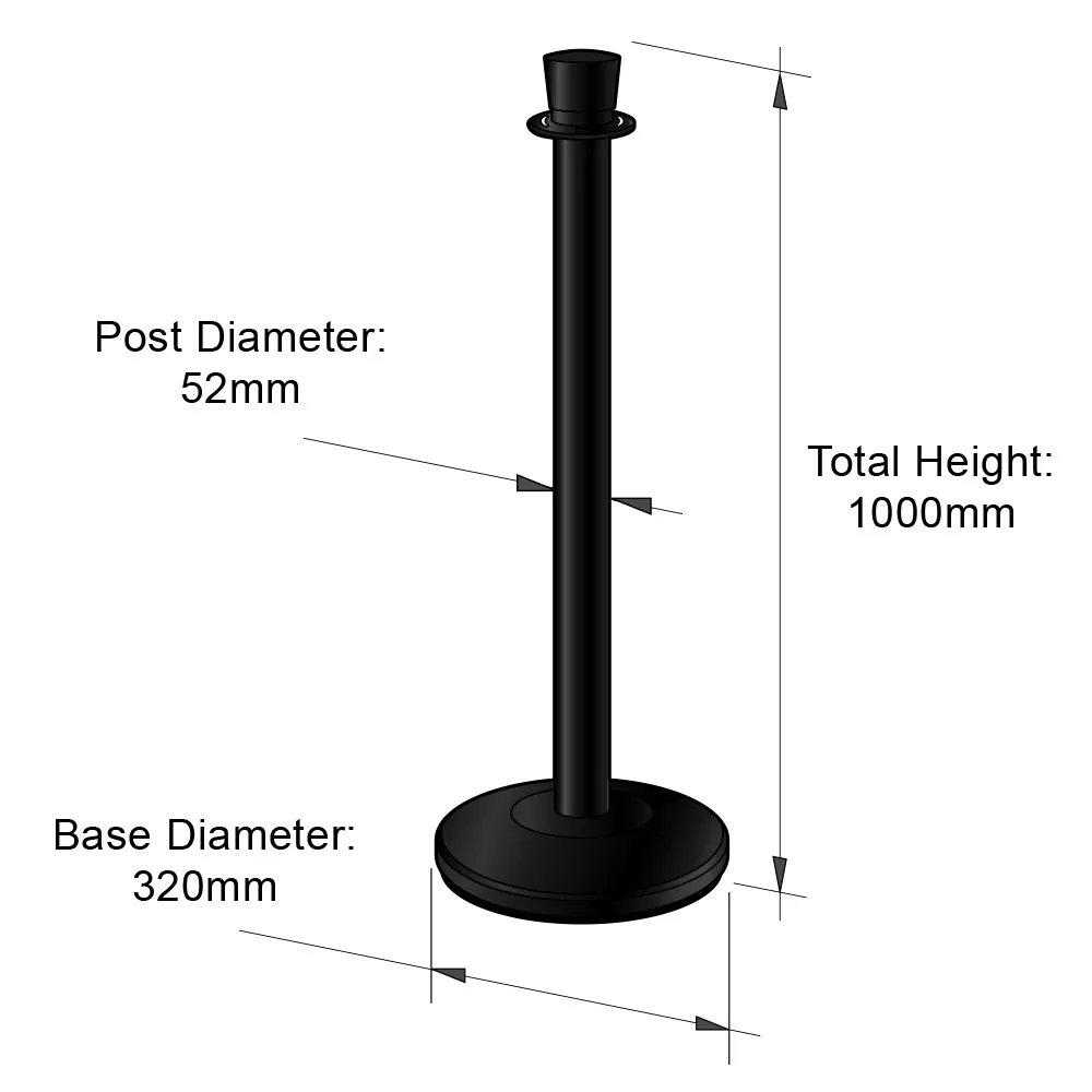 This queue crowd barrier, rope pole features a matte black finish for a professional look that can be used with any style of décor. The 1m tall barrier post is standard height to easily be seen without blocking overall view for customers. The top of the post has a decorative tulip design, and the base has a 320mm diametre to provide ample support to the stanchion and help prevent easy tipping over whilst in use.