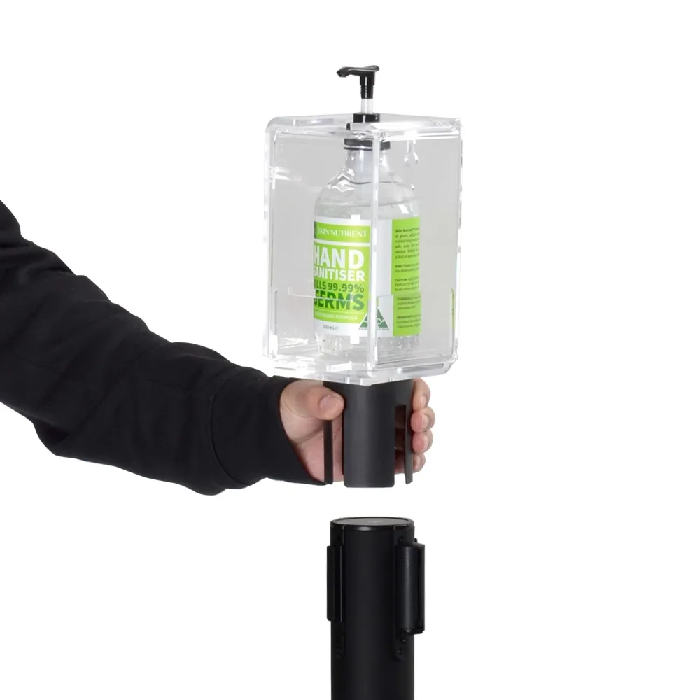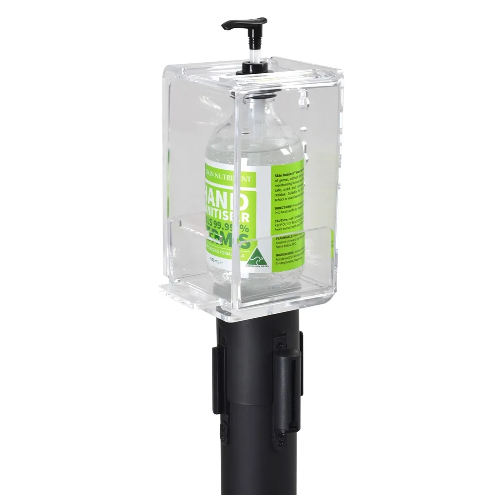 - Belt barrier sanitiser stations includes acrylic holder to offer hand sanitiser gels