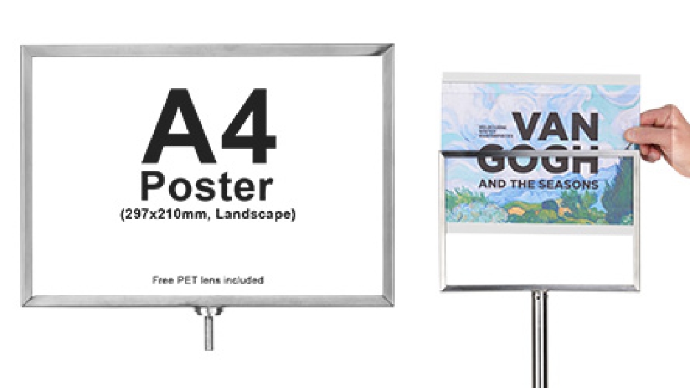 - Floor stand for signs display A4 (297 x 210mm) posters in landscape format!