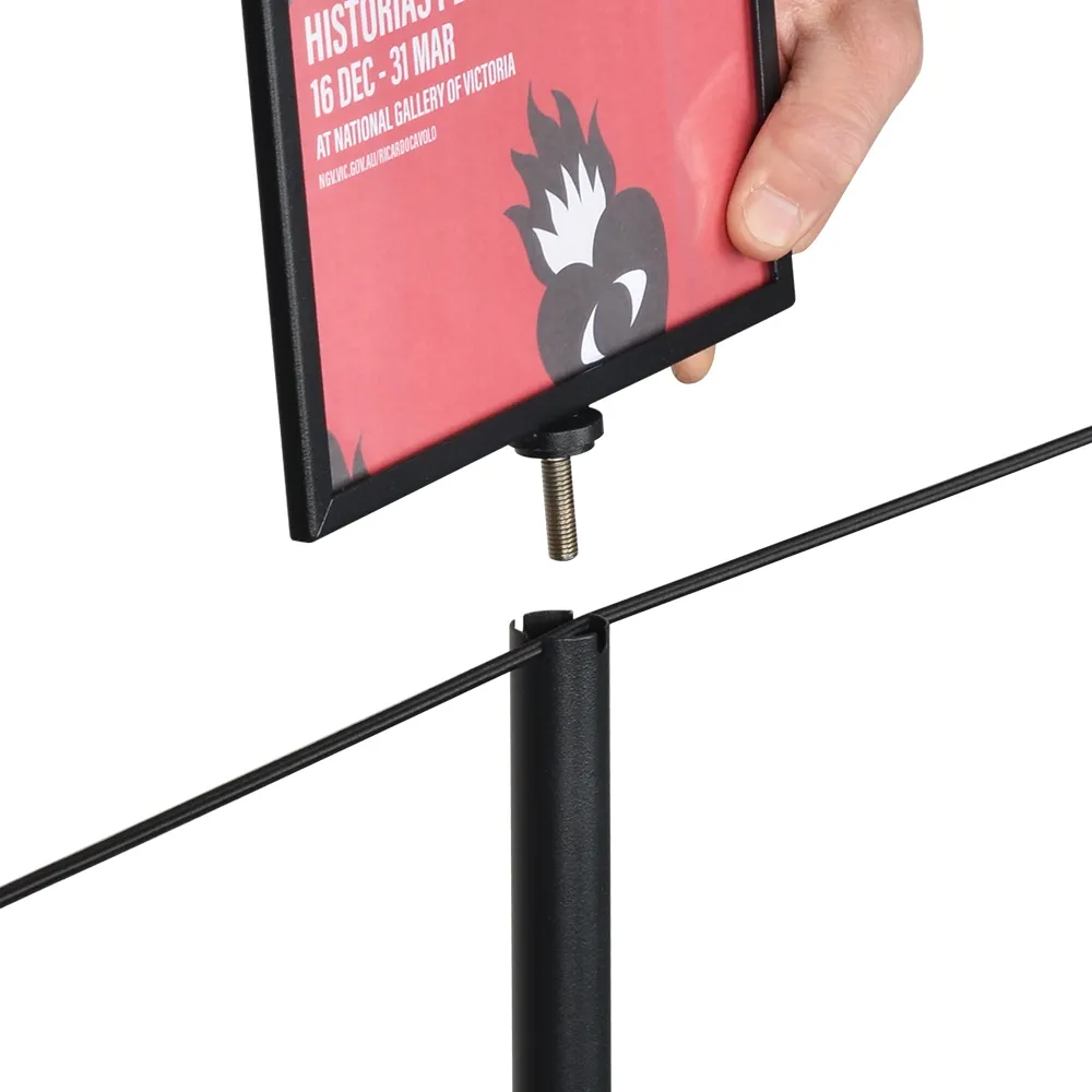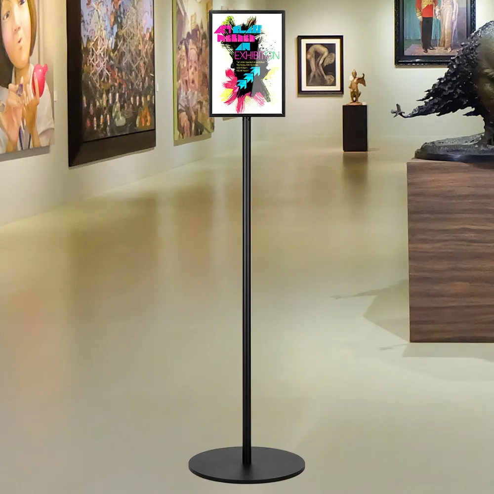 These poster displays, free standing floor signs feature a dual-sided frame for A4 (210 x 297mm) posters in portrait orientation! The 2-sided design means you can reach visitors in multiple directions at once from a single footprint to allow customers to easily move around displays or for placement of additional fixtures. The 1290mm tall unit is perfect for use alongside our line of gallery barriers, designed to provide a full view of exhibits or create a stylish queue without inhibiting view by using elastic cords and slim posts!